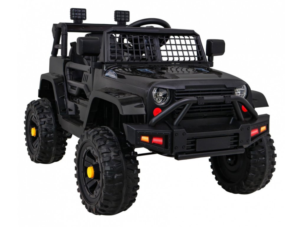 Dětské elektrické autíčko jeep Dark Night přijíždí na velkých pěnových Eva kolech, která jsou tichá a přizpůsobí se různým typům terénu. Dítě se posadí do pohodlně tvarované sedačky s bezpečnostními pásy, je vyrobena z kvalitní ekologické kůže. Nosnost je do 30 kg.