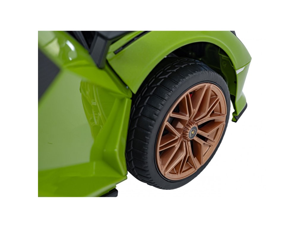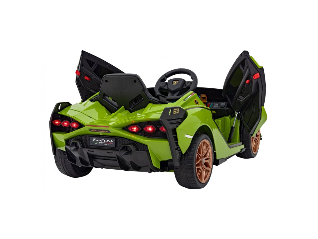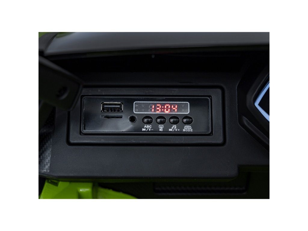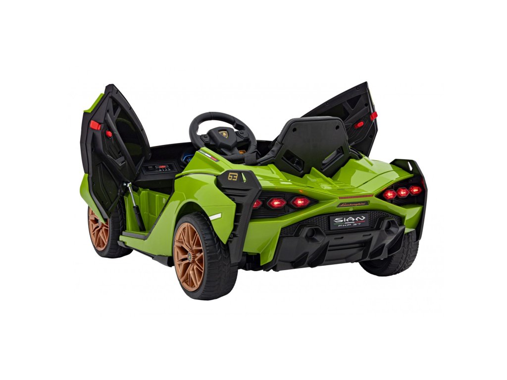 Elektrické autíčko Lamborghini Sian má čtyři motory s celkovým výkonem 106W a baterii s kapacitou 12V 7Ah. O pohodlnou jízdu se postarají pěnová EVA kola a sedačka potažená ekologickou kůží. Dítěti jízdu určitě zpříjemní hudební panel s MP3, USB, AUX a vstupem pro SD kartu. Nosnost autíčka je 25 kg. Autíčko má přední i zadní LED osvětlení a otevírací dveře.
