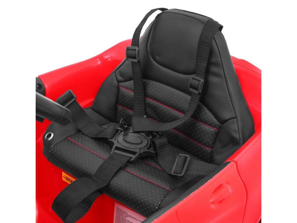 Licencované výkonné sportovní elektrické auto s otevíracími dveřmi a nabíjecím akumulátorem. Vyrobeno z kvalitního plastu s pohodlným koženým sedadlem a pětibodovým bezpečnostním pásem. Určeno pro jedno dítě. Auto jezdí dopředu i dozadu. Včetně dálkového ovládání pro rodiče 2.4GHz, když dítě ještě nezvládá řízení autíčka samo. Auto má zvukové a světelné efekty. Potěší všechny chlapce i holčičky.