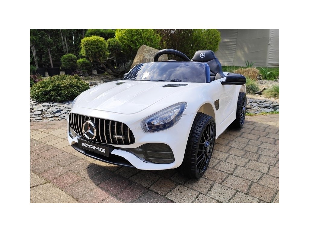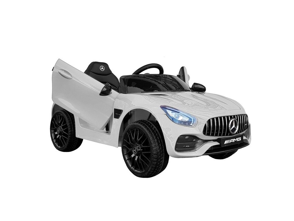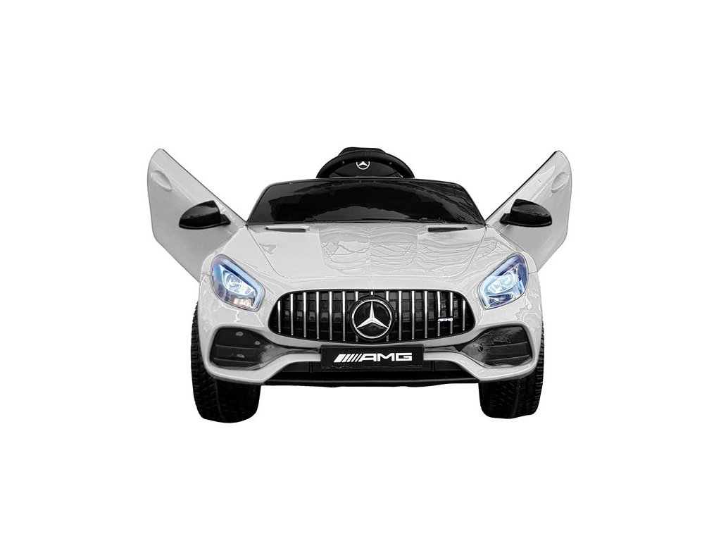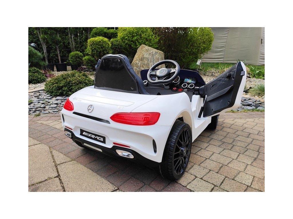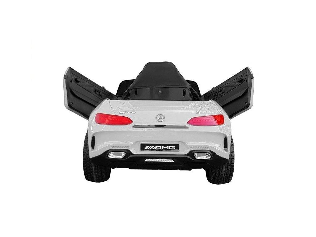 Prvkem, který v dětské verzi bílého Mercedesu AMG GT nemohl chybět, je rádio FM s přehrávačem MP3. Má port USB a vstup pro paměťové karty SD, díky kterému se vaše dítě bude cítit jako ve skutečném vozidle.