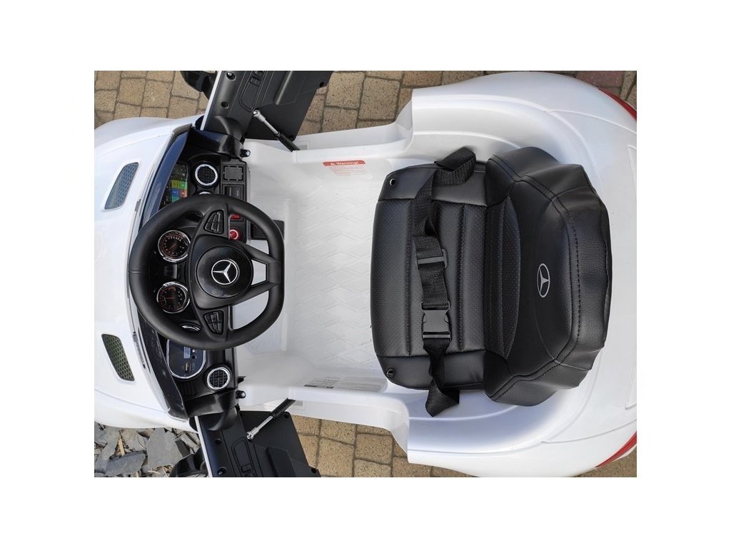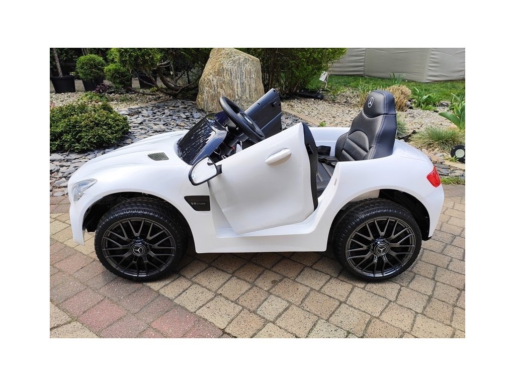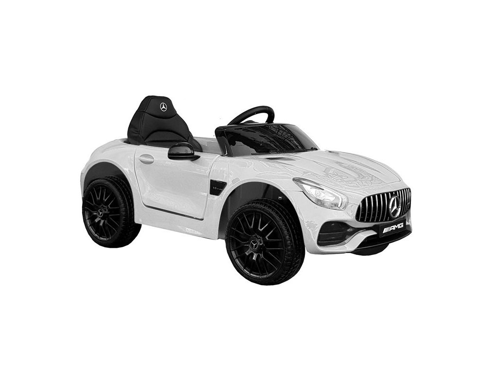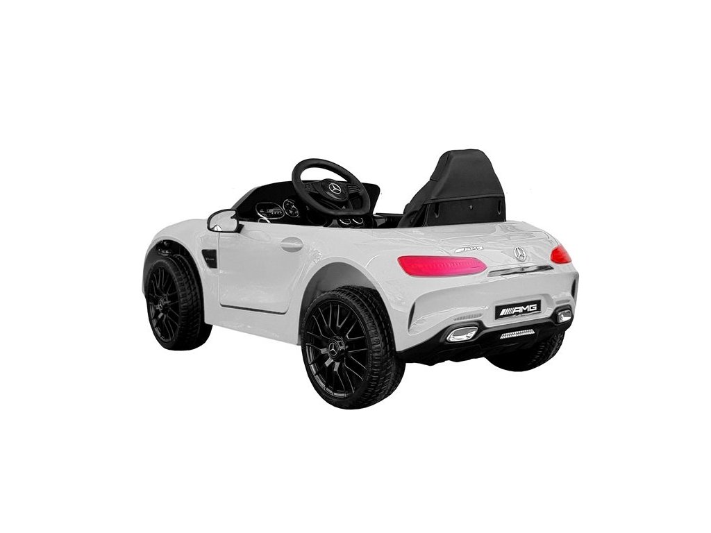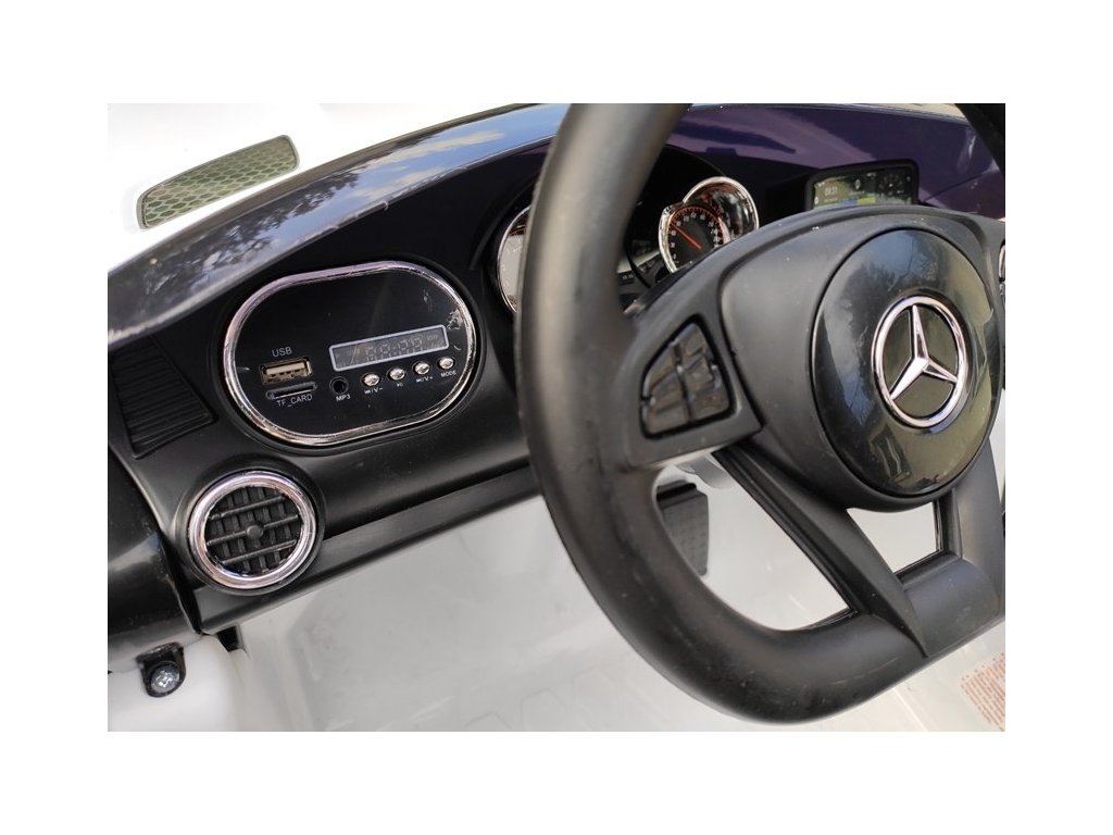 Prvkem, který v dětské verzi bílého Mercedesu AMG GT nemohl chybět, je rádio FM s přehrávačem MP3. Má port USB a vstup pro paměťové karty SD, díky kterému se vaše dítě bude cítit jako ve skutečném vozidle.