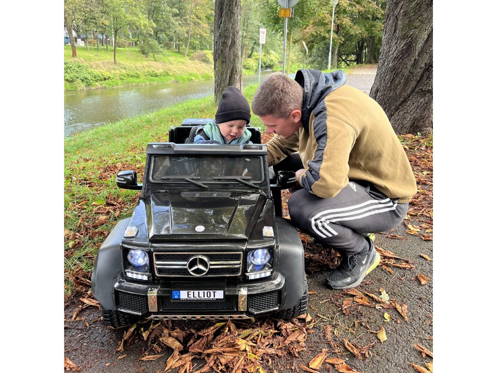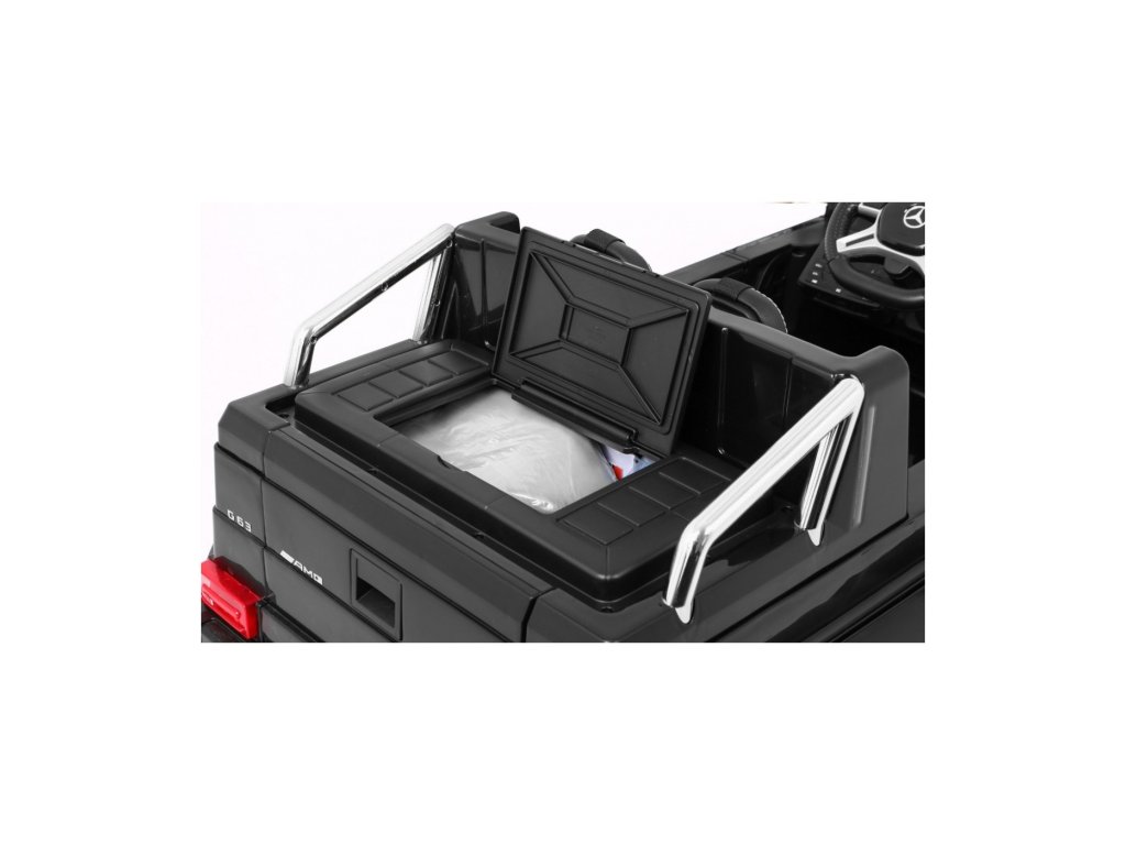 Mercedes G63 je určeno pro děti i rodiče, a to díky 2 plynovým pedálům - vnitřní a vnější. Vnitřní pedál je určen pro dítě a vnější pedál je umístěný na prahu vozu a je určený pro rodiče. Díky přepnutí do rodičovského režimu, rodič může sedět na v zadní častí vozidla a ovládat rychlost autíčka. Místem k sezení pro rodiče je kufr, umístěný v zadní části vozidla, který se po otočení změní v sedadlo pro rodiče.