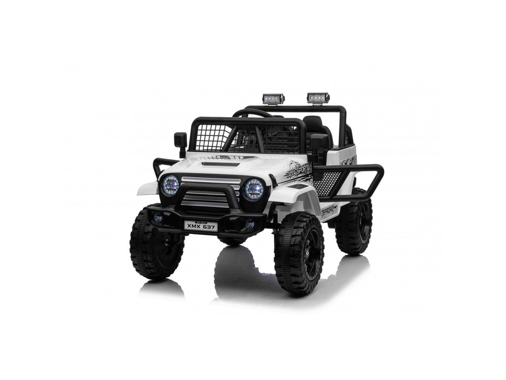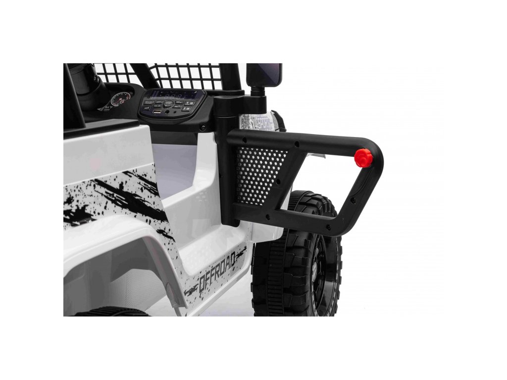 Elektrické autíčko OFF ROAD se čtyřmi motory o celkovém výkonu 140W nesmí chybět v žádné dětské garáži. Autíčko je poháněno baterii s kapacitou 12V 10Ah. Maximální zatížení vozítka je 50 kg. Během jízdy dítě určitě zaujme hudební panel s MP3, Bluetooth, USB, AUX, Rádiem a vstupem pro SD kartu.