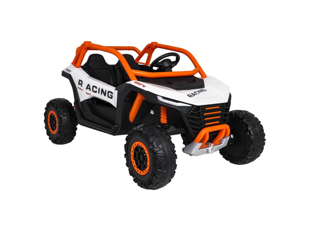 Dětské elektrické auto RACING Road 2000 24V je robustní a všestranný model pro dva malé řidiče, kteří si chtějí užít opravdové dobrodružství. Díky čtyřem výkonným motorům (4 × 120W) a silnému akumulátoru 24V 7Ah si auto poradí nejen s hladkým povrchem, ale i s mírně nerovným terénem. Měkká pěnová EVA kola a zadní odpružení s možností regulace zajišťují hladkou jízdu bez zbytečných otřesů, zatímco funkce pozvolného rozjezdu (soft start) přispívá k bezpečnosti a pohodlí.