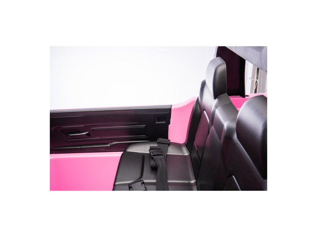 Vozidlo lze ovládat i dálkovým ovladačem, který umožňuje regulaci rychlosti, změnu směru jízdy a disponuje bezpečnostním tlačítkem Stop pro okamžité zastavení. Autíčko je vybaveno funkcí automatické brzdy, která se aktivuje po spuštění nohy z plynového pedálu. O bezpečnost se navíc postarají bezpečnostní pásy.