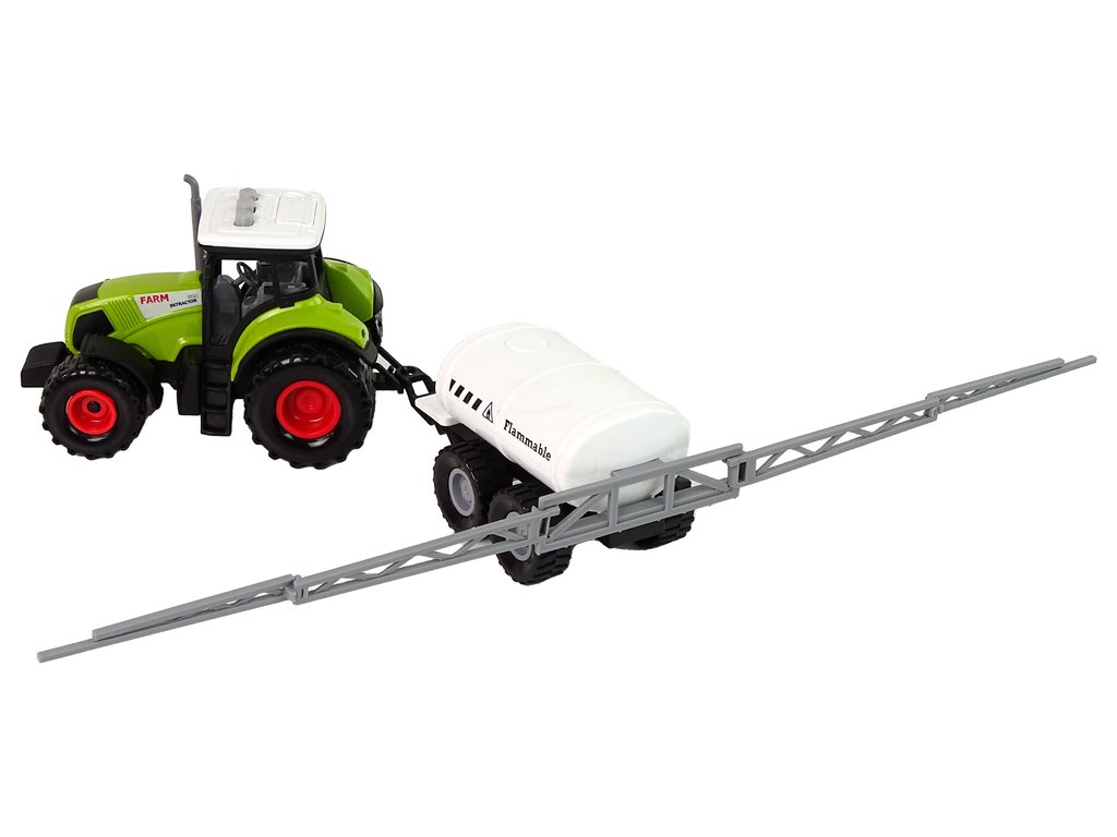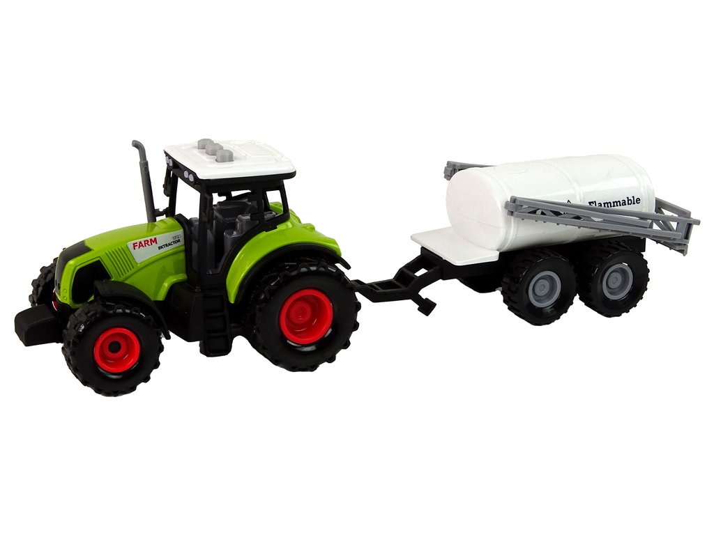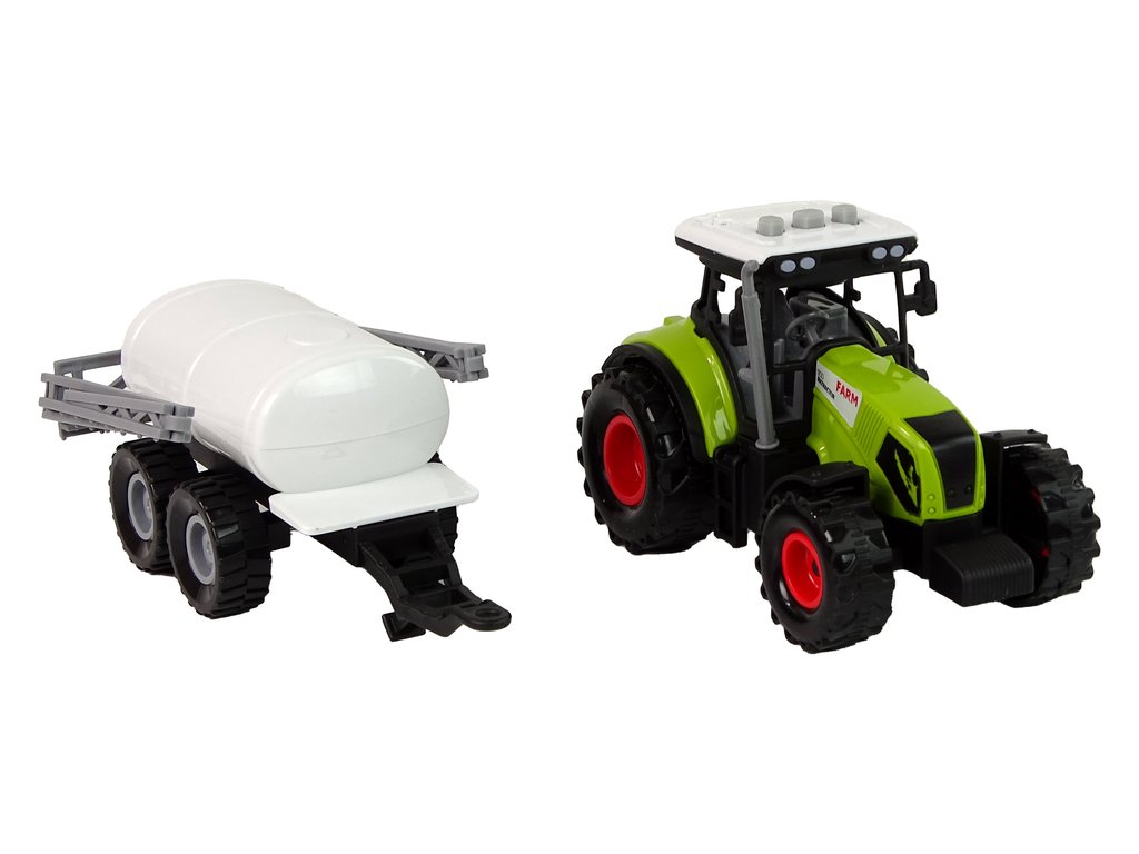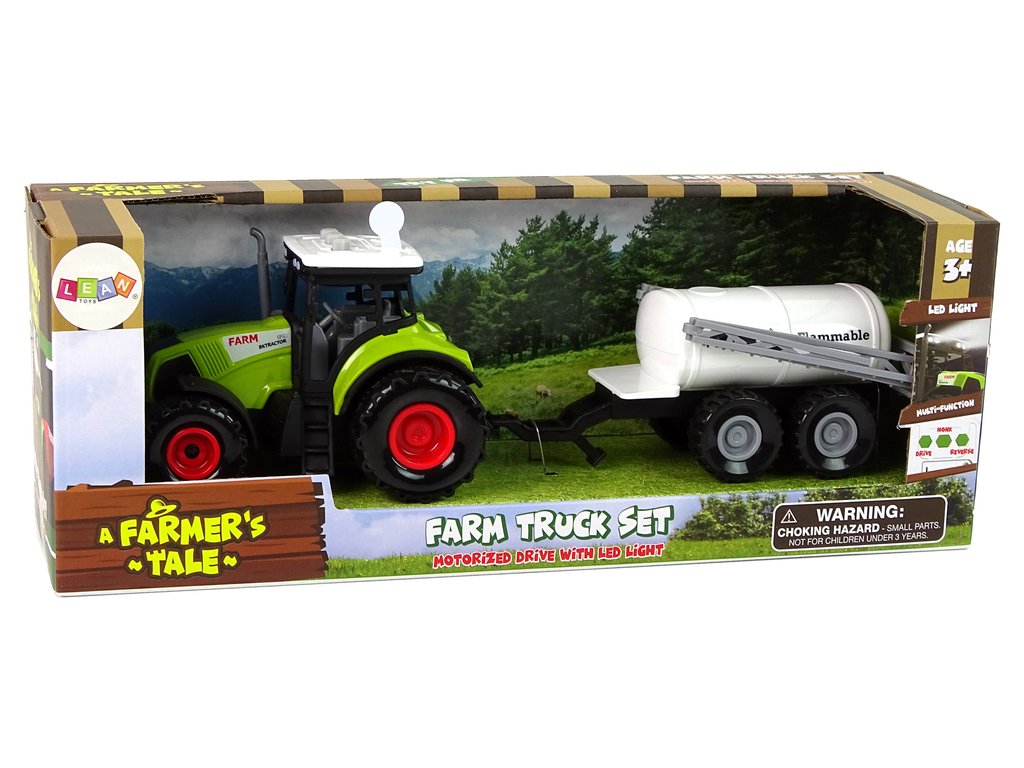 Převládající barvou hračky je zelená, kterou si s tímto typem vozidla spojujeme. Součástí sady je traktor a přívěs, což dětem zpestří hru. Samotný traktor má možnost jízdy a vydává charakteristické zvuky. Zadní kola díky třecímu pohonu umožňují vozidlu pohyb vpřed nebo vzad, podle toho, co preferujete. Z hlediska zvukových projevů má traktor 3 tlačítka na střeše. Tato tlačítka vydávají zvuky, jako je couvání, troubení a startování. Abyste zvuky slyšeli, je třeba vytáhnout bílou plastovou pojistku.