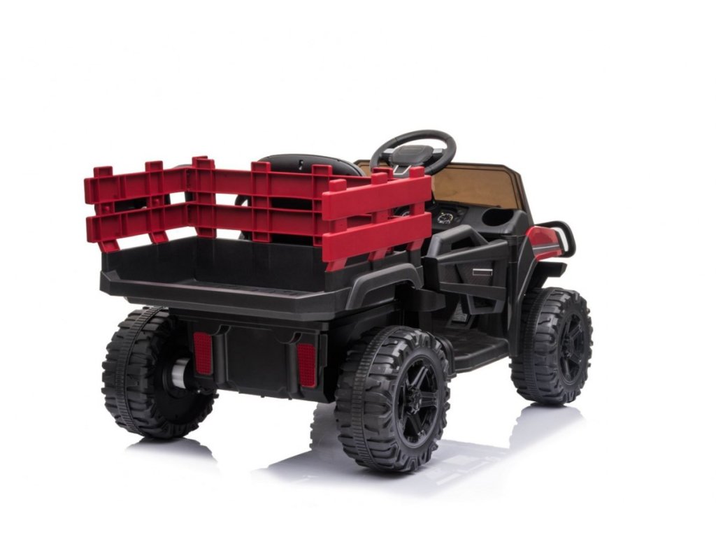 Dětské elektrické autíčko Farmer Pick-Up přijíždí na pěnových EVA kolech, která jsou tichá a přizpůsobí se různým typům terénu. Dítě se posadí do pohodlné sedačky z měkké ekologické kůže a jízdu si jistě zpříjemní hudbou, kterou lze pustit z FM rádia či vstupu MP3, SD a AUX.