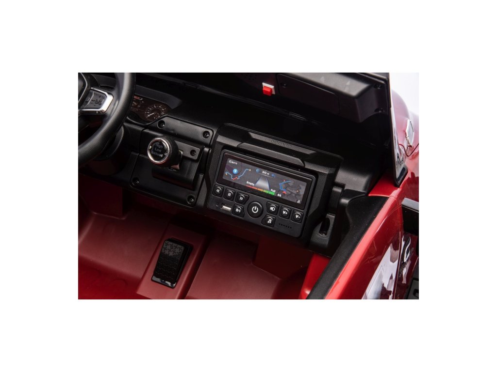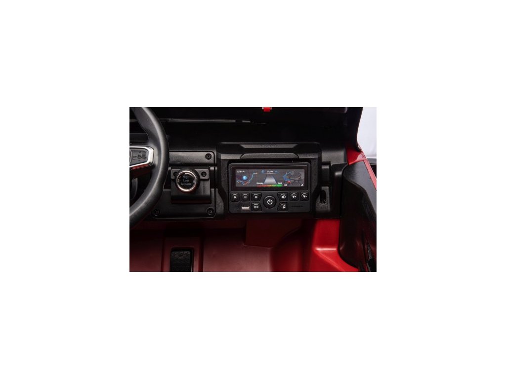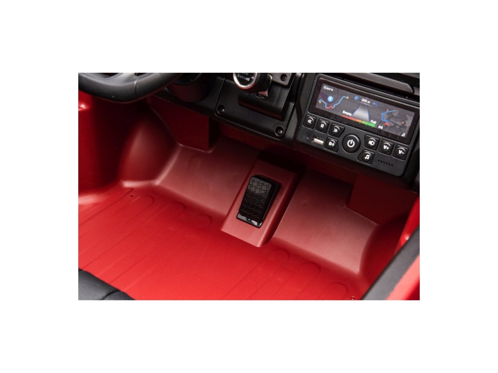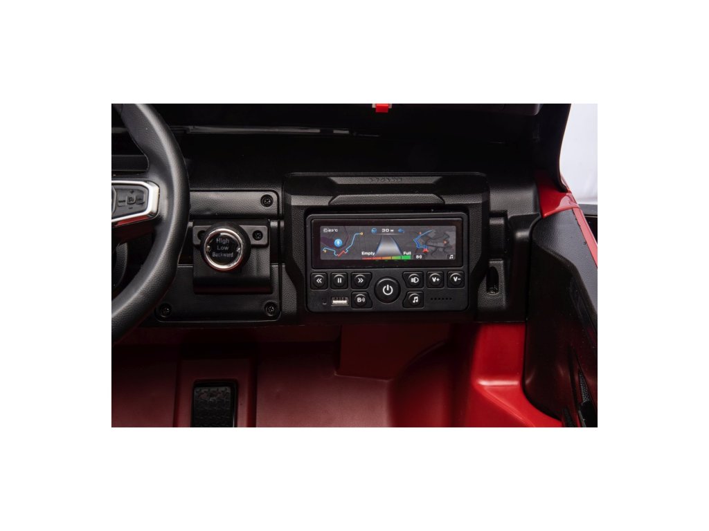 Vozidlo lze ovládat i dálkovým ovladačem, který umožňuje regulaci rychlosti, změnu směru jízdy a disponuje bezpečnostním tlačítkem Stop pro okamžité zastavení. Autíčko je vybaveno funkcí automatické brzdy, která se aktivuje po spuštění nohy z plynového pedálu. O bezpečnost se navíc postarají bezpečnostní pásy.