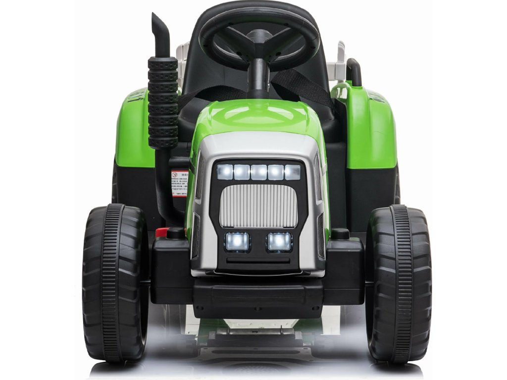 Konstrukce elektrického traktoru je založena na čtyřech kolech. Lehká plastová kola proti propíchnutí. Dětský traktor je poháněn 12V4,5Ah baterií, která je doprovázena motory 2x45W. Traktor je určen pro chlapce i dívky - jediným omezením je zatížení do 30 kg.