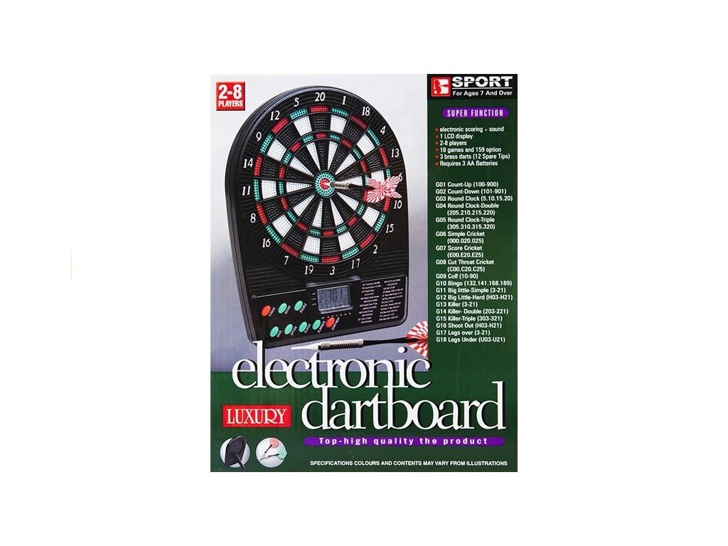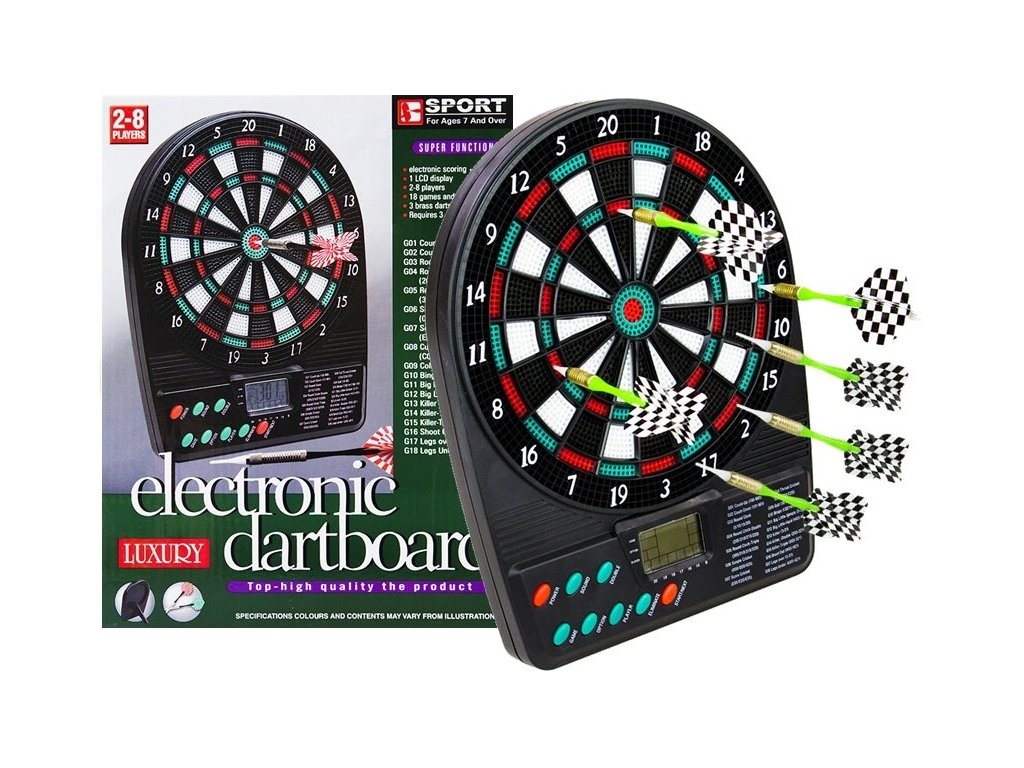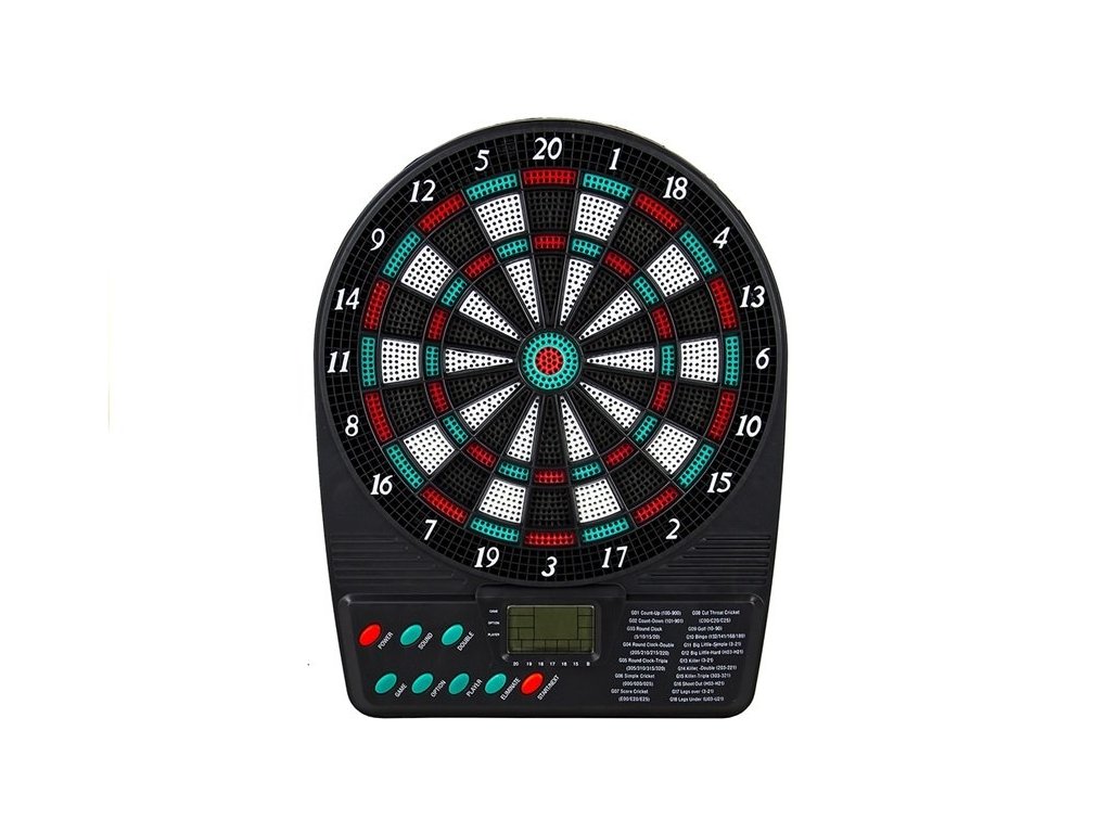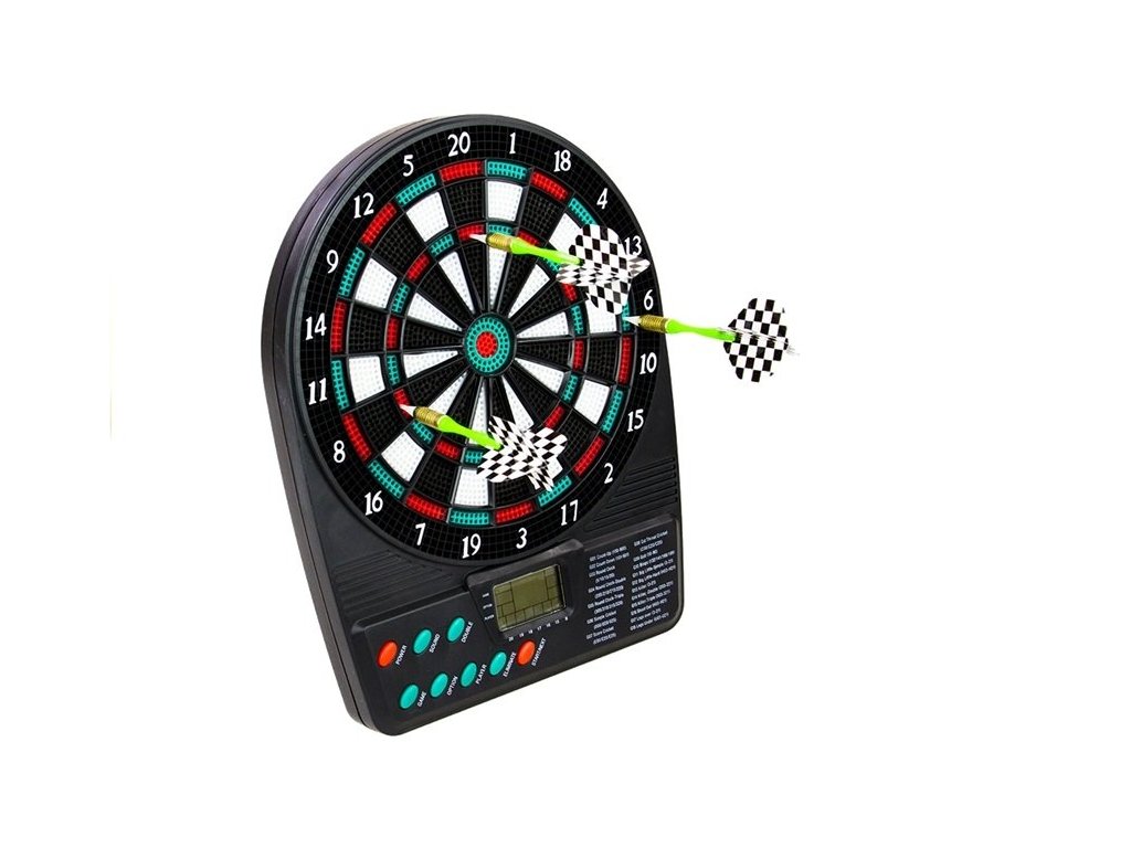 Přenosný elektronický terč, který potěší všechny milovníky šipek. Díky svým malým rozměrům, kvalitnímu zpracování a bateriového napájení je vhodný pro zábavu kdekoliv. Je vyroben z kvalitního a odolného plastu, jeho průměr je pouhých 20 cm a díky bateriovému napájení jej lze snadno použít i všude tam, kde není dostupný elektrický proud. Funkce automatického vypnutí řadí tento přenosný terč na šipky mezi elitu ve své kategorii. Součástí tohoto elektronického terče je kompaktní stojánek pro umístění terče na stůl či poličku a sada 3 šipek.