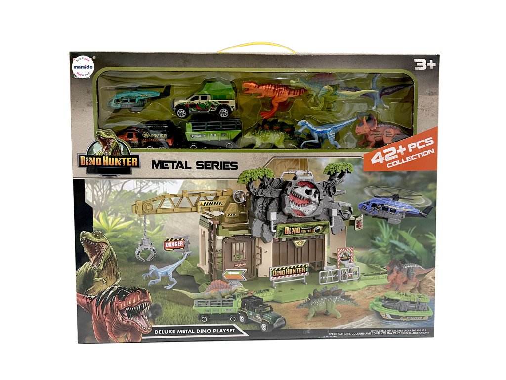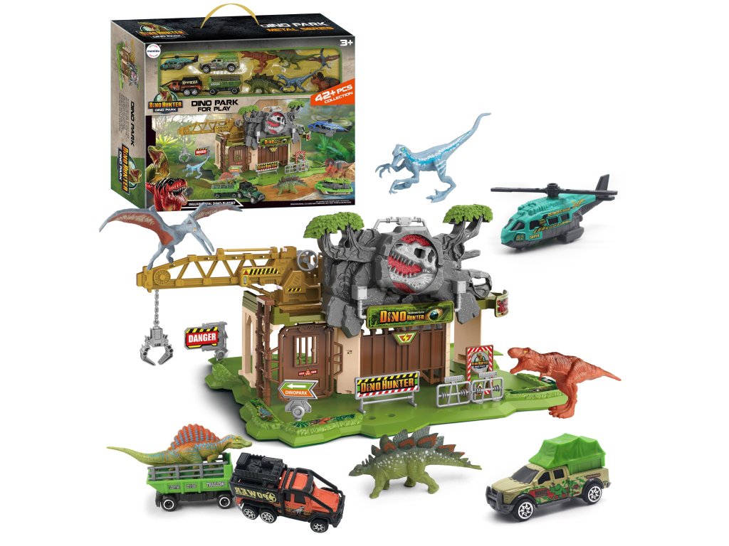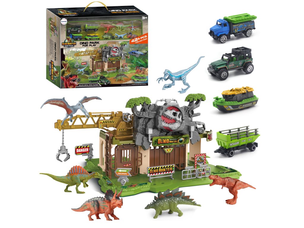 Dinosauři garaž s kovovými autíčky a dinosaury 42 ks MT1443