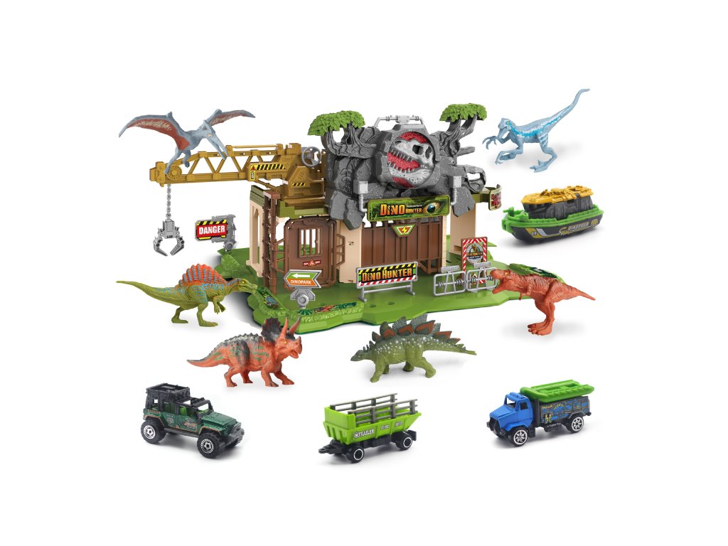Strhující dinosauří herní set spojuje svět prehistorických tvorů s moderní zábavou. Děti si vytvoří vlastní dobrodružnou základnu, kde nechybí parkoviště, skluz pro vozidla, výtahové prvky ani detailní dekorace připomínající divokou džungli. Kovová autíčka dodávají hře odolnost a dynamiku, zatímco dinosauří figurky přinášejí napětí a fantazii.