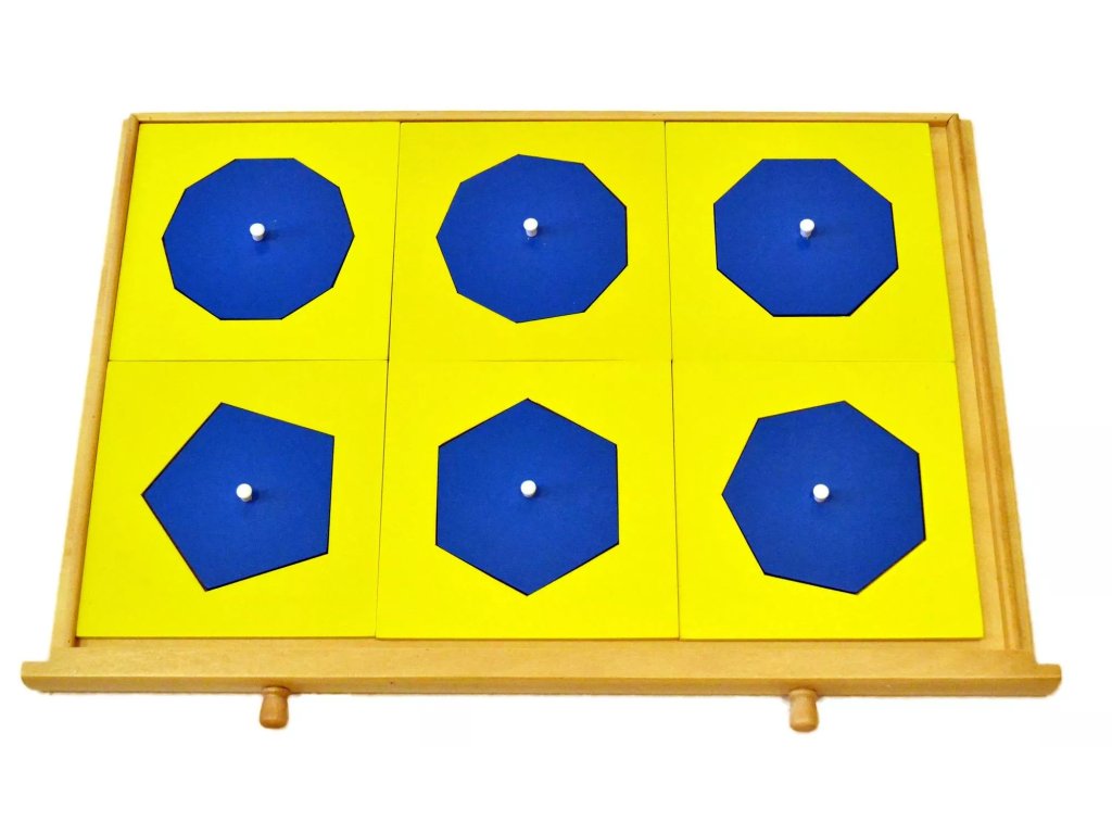 - Zásuvka 4: šest rovnostranných mnohoúhelníků: pětiúhelník až desetiuhelník.