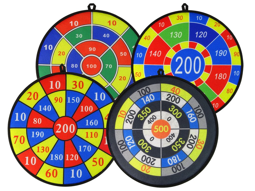 Design terče je klamně podobný jako u dospělých, ale je vyroben z příjemného materiálu na dotek , ke kterému se snadno připojí míčky díky suchému zipu. Dvanáct kulatých míčků rozdělených do čtyř barev vám umožní soutěžit. Shromážděte svou rodinu a začněte hrát.