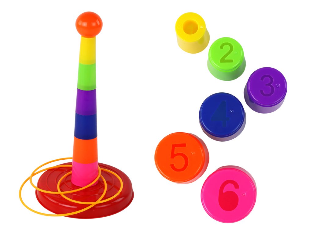 Tento kompletní set zajistí nezapomenutelné okamžiky zábavy pro celou rodinu. Součástí setu je základna, 6 očíslovaných kelímků a 4 různě velké obruče.