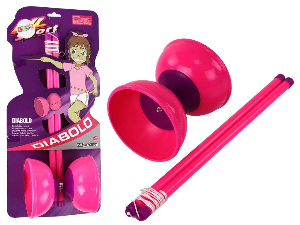 Sada obsahující dvě pevné tyče a diabolo vyrobené z odolného plastu nejen zaručuje nekonečný zážitek, ale také dlouhou životnost a spolehlivost i při intenzivním používání. Diabolo nejen poskytuje skvělou zábavu, ale také je vynikajícím prostředkem k rozvoji zručností a koordinace pohybu.