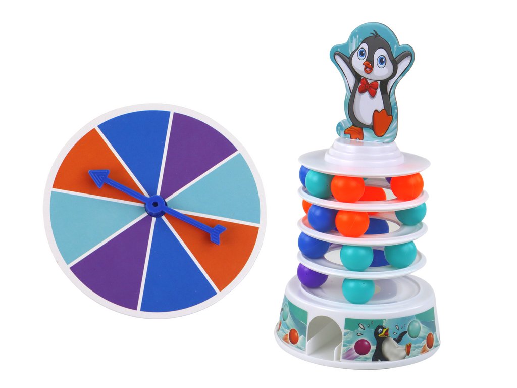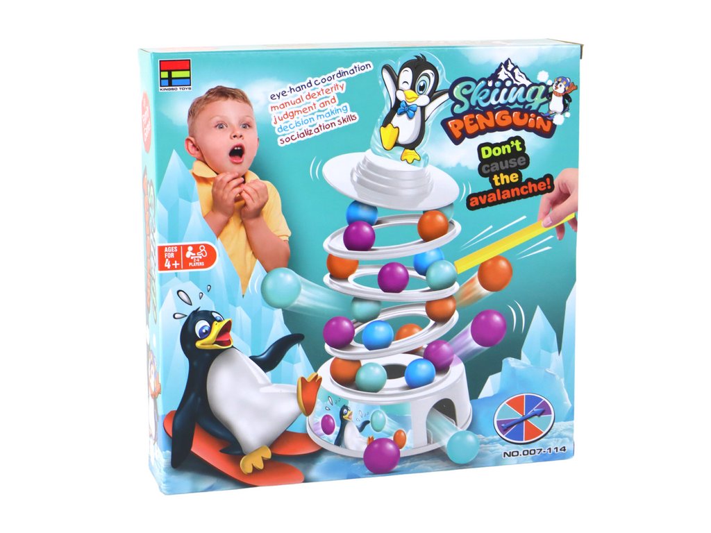 Nejprve složíme kývající se věž. Základna slouží jako podpora pro barevné míčky, které postupně stavíme na sebe, vytvářejíce ledovou horu. Na vrcholku věže je kryt s veselým tučňákem. Hra spočívá v umístění míčku odpovídající vylosované barvě do středu věže. Celá konstrukce je pohyblivá a nestabilní, což dělá tuto zábavu výzvou. Prohraje ten, kdo převrátí věž a nešťastně shodí tučňáka.