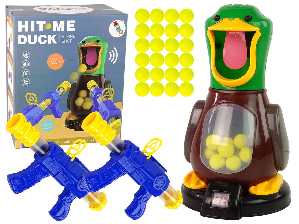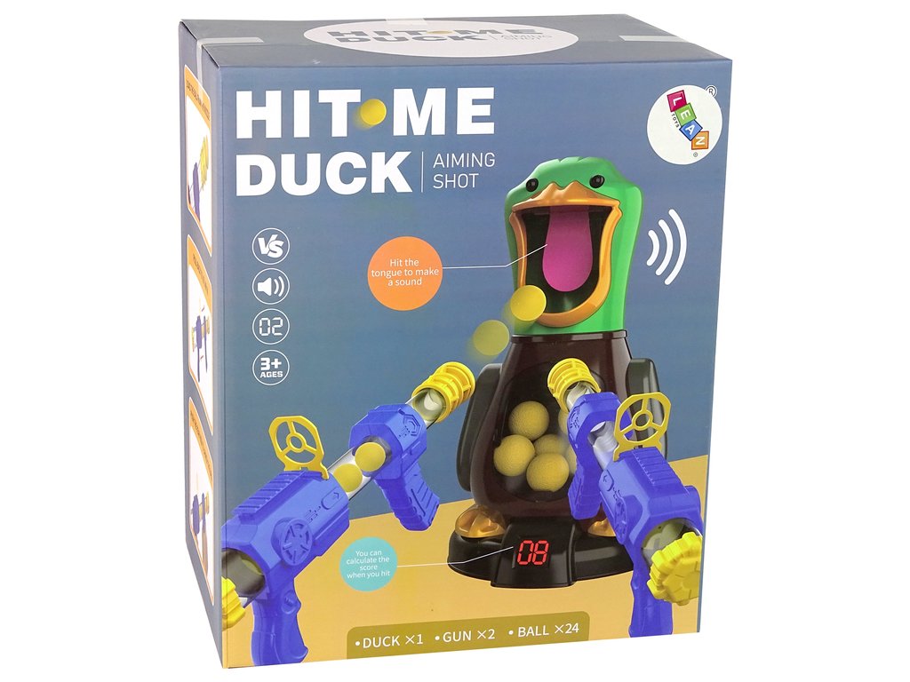 Tato hra je velmi jednoduchá, každý hráč dostane pistolku a střelecky se zaměří na obličej kachny. Světelné a zvukové efekty ukáží směr střely. Nabijte pistolku měkkými kuličkami a střílejte. Při každém zásahu uslyšíte zvuk kachny. Spodní počítadlo ukazuje počet bodů. Ten, kdo získá nejvíce bodů, vyhraje! Soutěž vyvolá silné emoce!