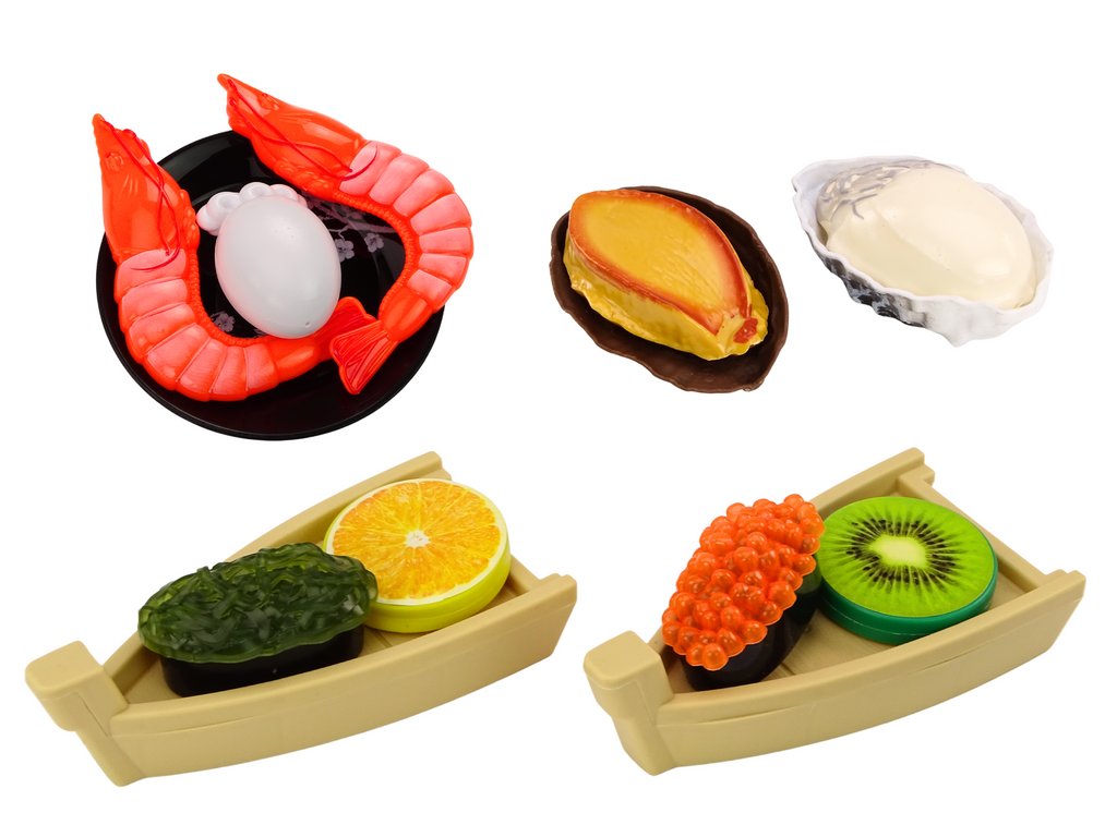 Zábavná sada pro děti, která je přenese do kouzelného světa přípravy a servírování lahodného sushi. Sada obsahuje různé ingredience potřebné k přípravě chutného sushi. Mezi nimi jsou krevety, losos, wasabi, rýže, nori řasy a hůlky na sushi.
