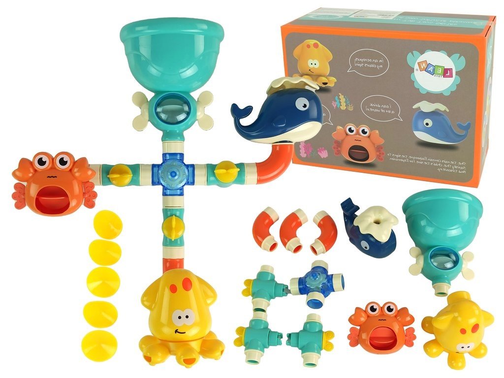 Obsahuje tři okouzlující mořské tvory: tmavě modrou velrybu, červeného kraba a žlutou chobotnici. Jakým způsobem poskytují zábavu? Je to snadné! Naléváním vody do horní modré nádoby může dítě sledovat, jak voda stéká skrze různé části hračky.