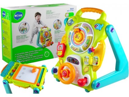 Interaktivní chodítko pro nejmenší je ideální pro děti, které sedí, plazí se a podnikají své první kroky. Součásti hračky je klavír, který hraje veselé melodie, svítící hvězda a chrastítko v podobě telefonu. UPOZORNĚNÍ před prvním použitím chodítka povolte šrouby na vnitřní straně kol, které blokují pohyb hračky. Díky hraní s tímto chodítkem se dítě naučí první slova, písmena a čísla. Rychlá a snadná montáž a demontáž. |
