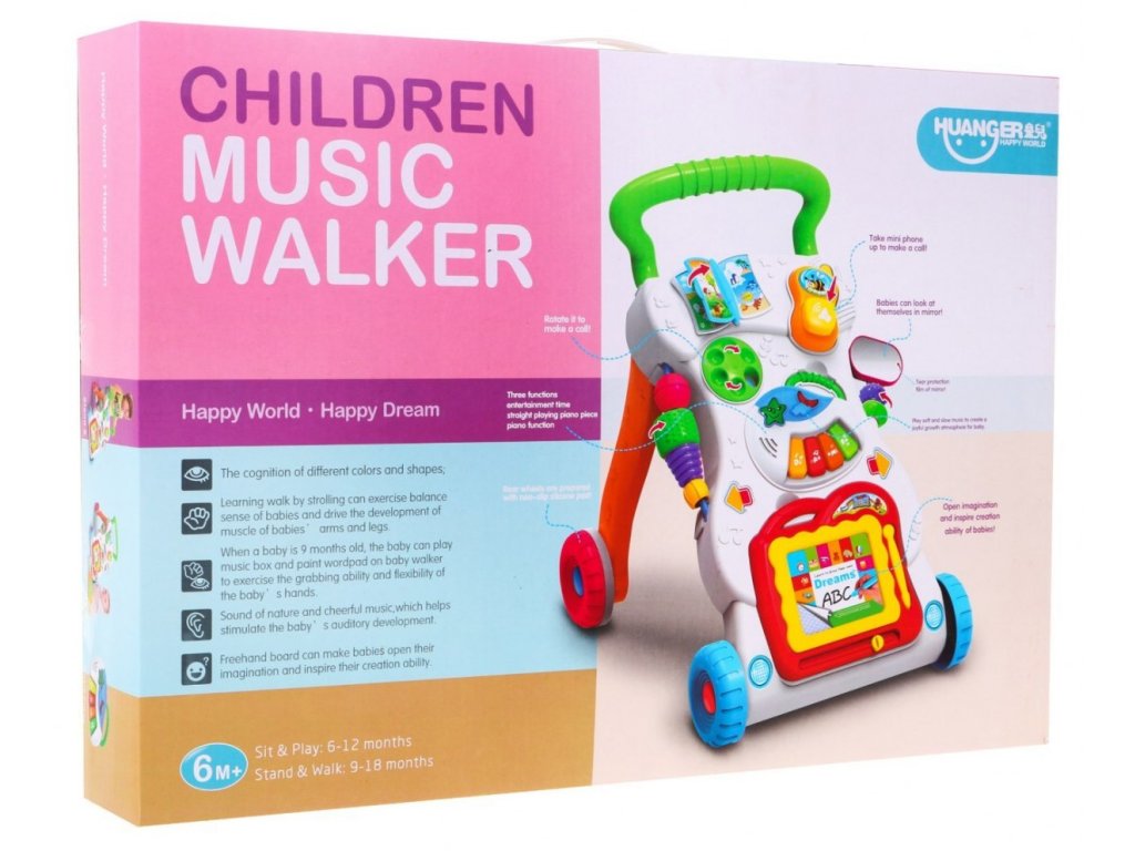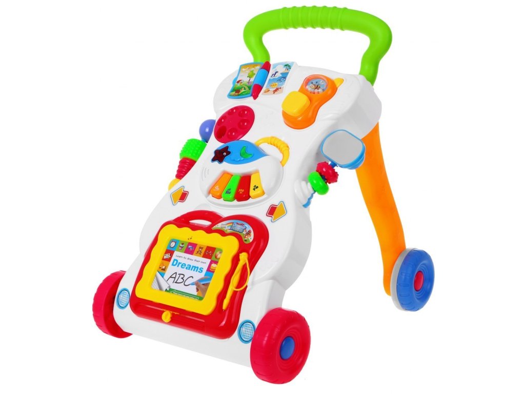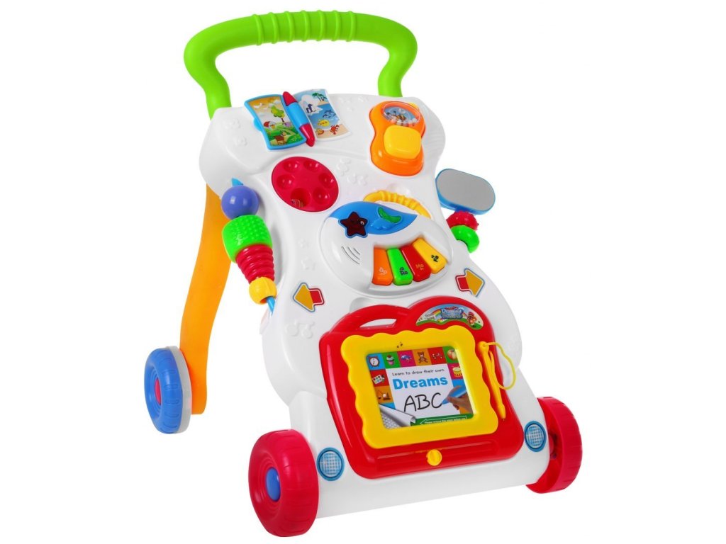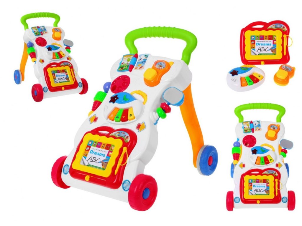 Interaktivní chodítko pro nejmenší je ideální pro děti, které sedí, plazí se a podnikají své první kroky. Součásti hračky je klavír, který hraje veselé melodie, svítící hvězda a chrastítko v podobě telefonu. UPOZORNĚNÍ před prvním použitím chodítka povolte šrouby na vnitřní straně kol, které blokují pohyb hračky. Díky hraní s tímto chodítkem se dítě naučí první slova, písmena a čísla. Rychlá a snadná montáž a demontáž. |