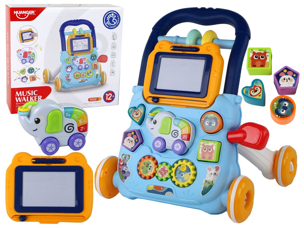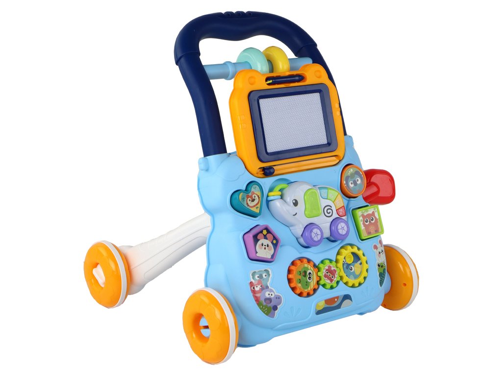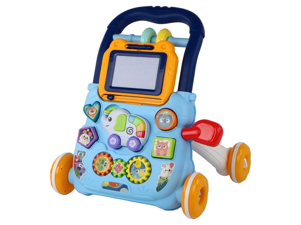 Naše modré chodítko je nejen pomůckou při učení prvních krůčků, ale také interaktivní výukovou tabulí. Na přední straně chodítka je panel, na kterém je umístěna tabule se stylusem. Tabuli lze z chodítka snadno vyjmout a používat ji samostatně, což vašemu dítěti umožní zábavnou a poutavou formou rozvíjet dovednosti kreslení a psaní.