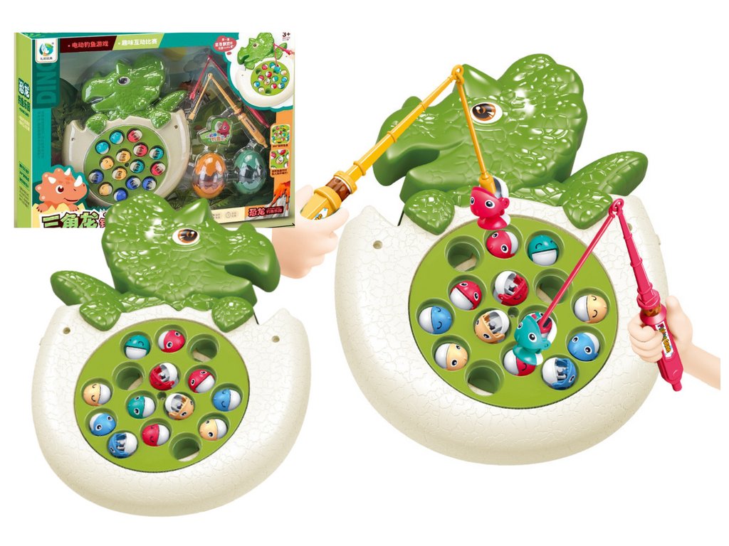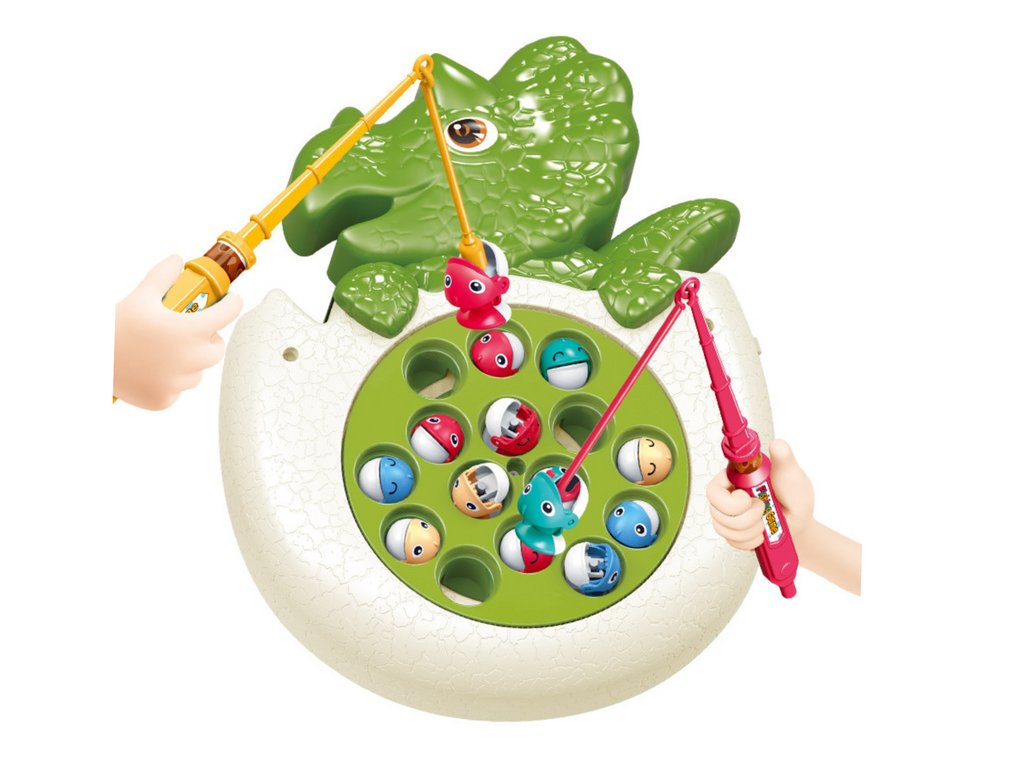 Objevte kouzelný svět lovu rybiček v zábavné a barevné hře ve tvaru dinosaura. Tato interaktivní hračka nejen zaujme děti svým roztomilým vzhledem, ale také nabízí napínavou a dynamickou hru, která rozvíjí postřeh, koordinaci a jemnou motoriku. Rotující jezírko, veselé zvuky a barevné rybičky vytvářejí magickou atmosféru plnou smíchu a soutěžení.