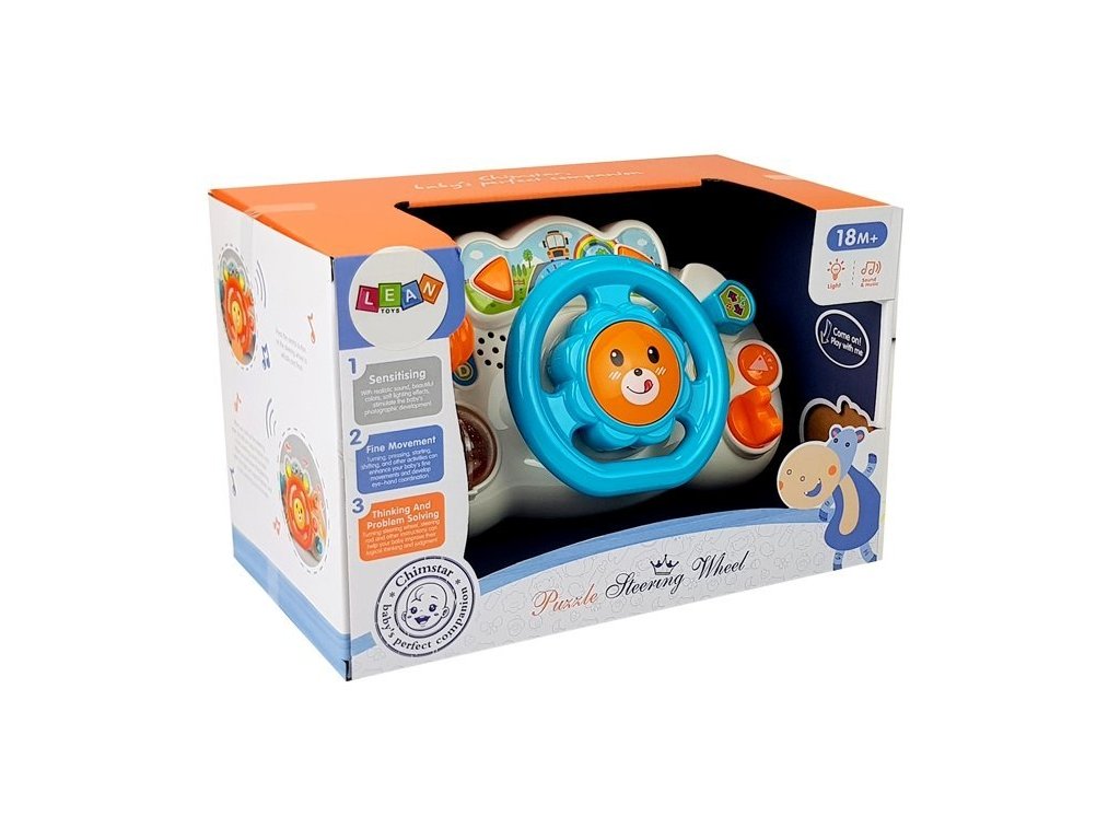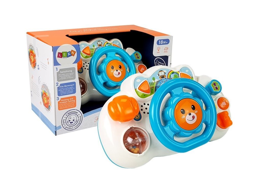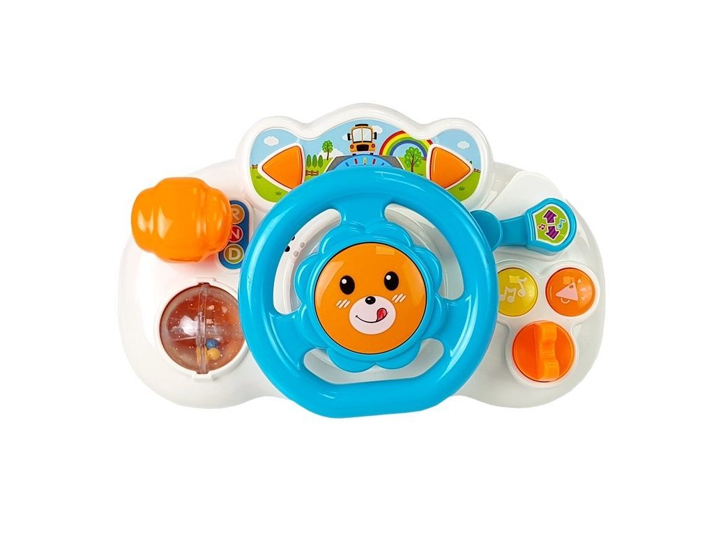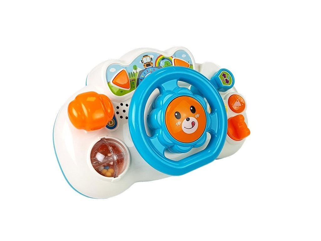 Interaktivní volant je ideální hračkou pro první měsíce života dítěte. Volant vybavený barevnými tlačítky poskytne dítěti velké potěšení. Dítě bude poznávat okolní svět, rozvíjet své motorické a manuální dovednosti, sluch a schopnost porozumět tvarům a barvám. Kromě toho je na pravé straně hračky řadicí páka a na levé straně nastavitelné zrcadlo. Velikost volantu dokonale odpovídá velikosti malých ručiček dítěte.