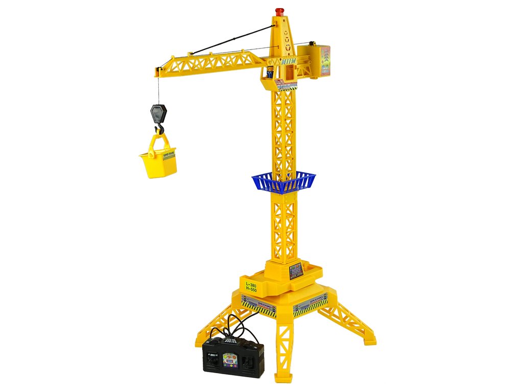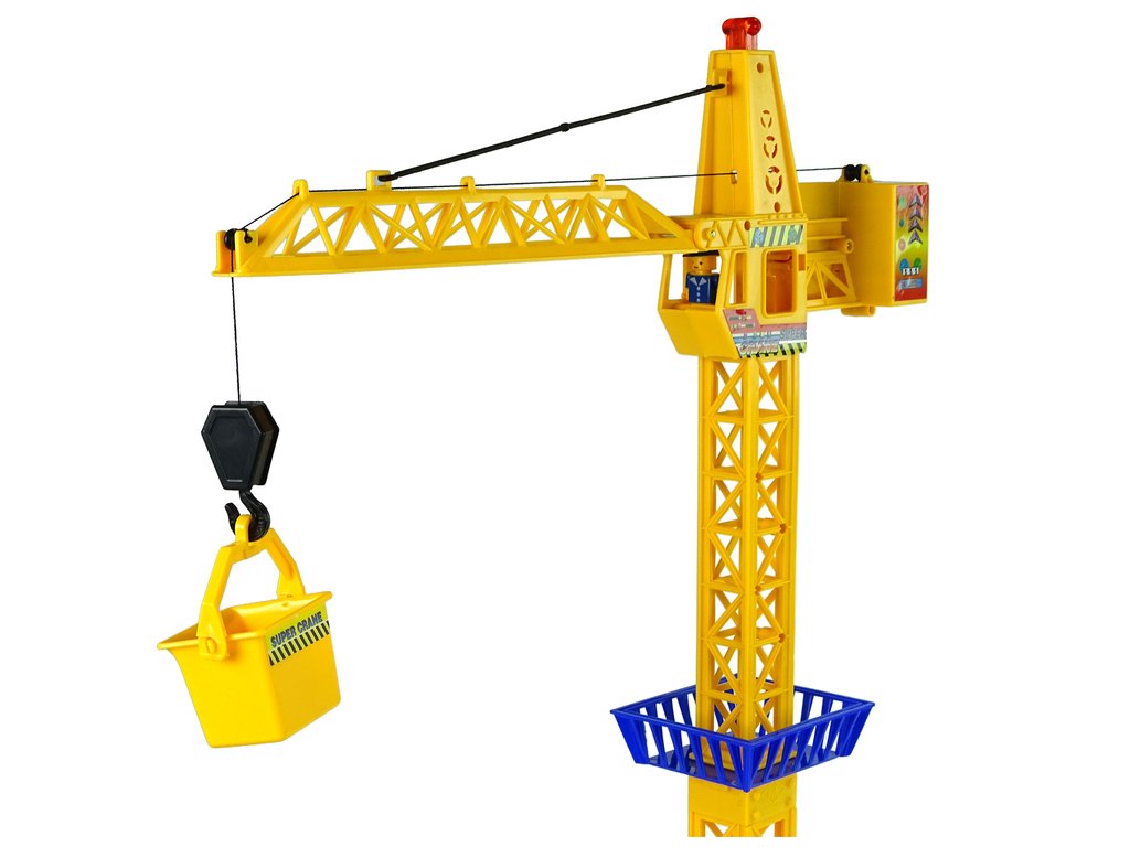 Jeřáb na dálkové ovládání má otočnou kabinu o 360°. Na konci ramene jeřábu je umístěn háček, který umožní jeřábu zvedat kontejner, který je součástí balení. Dálkový ovladač je propojen s jeřábem pomocí kabelu o délce 100 cm.