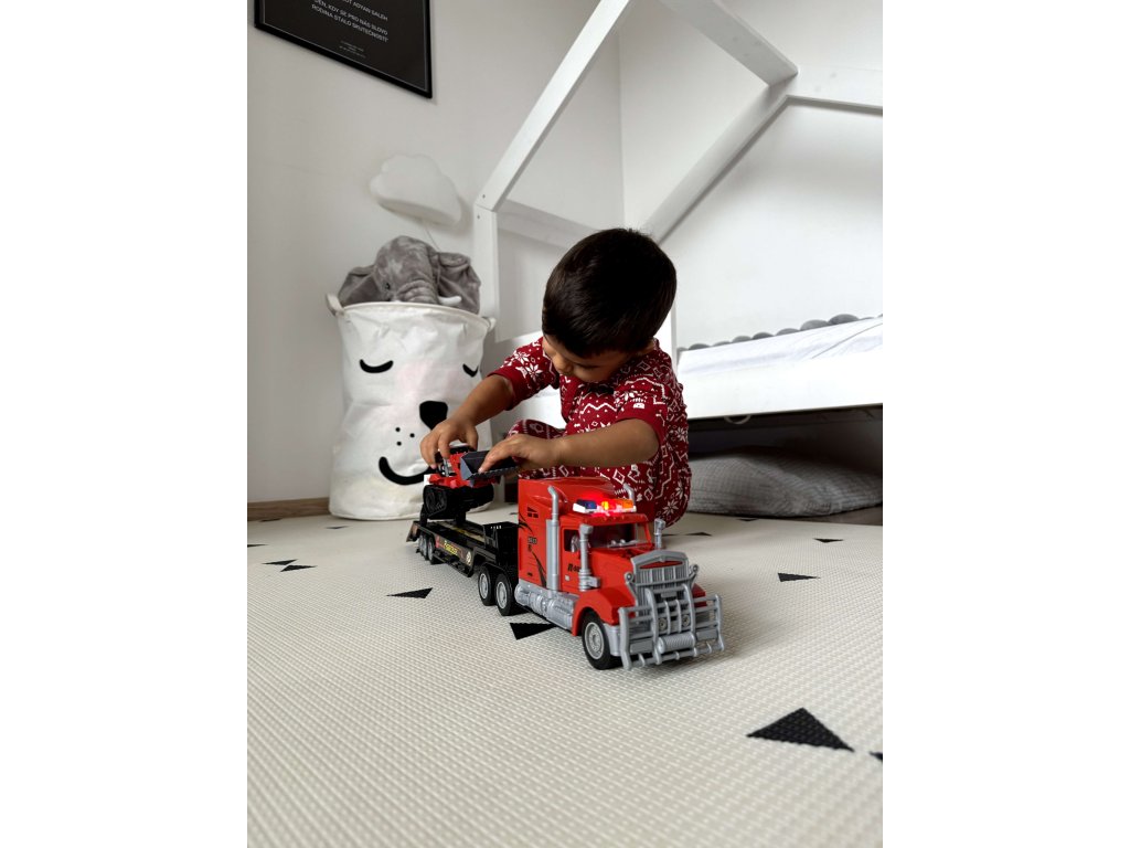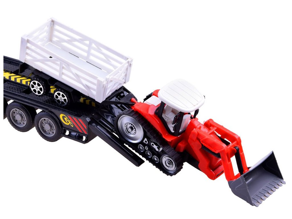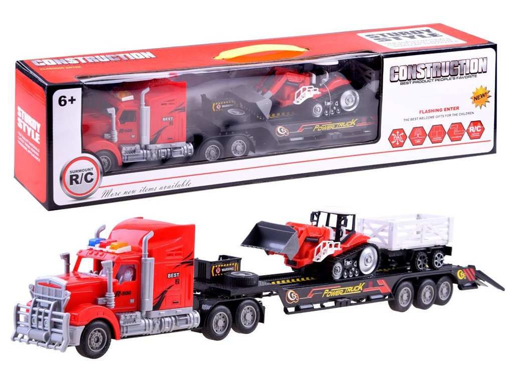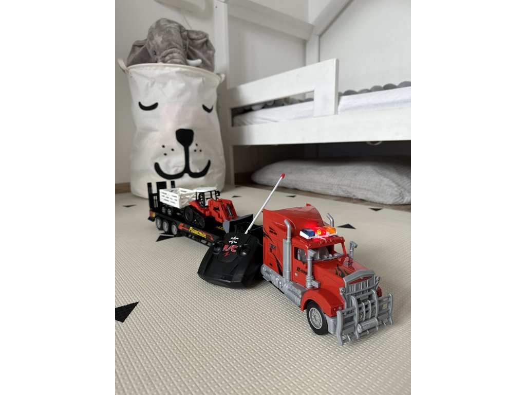 Kamion s přívěsem na dálkové ovládání s traktorem s vlečkou poskytne všem fanouškům vozidel dvojnásobnou zábavu. Kamion má světelné efekty a poskytne dítěti spoustu zábavy při hraní. Ke kamionu lze připevnit přívěs, na který lze bezpečně přepravovat traktor s přívěsem. Hračka je ovládána pomocí dálkového ovladače.