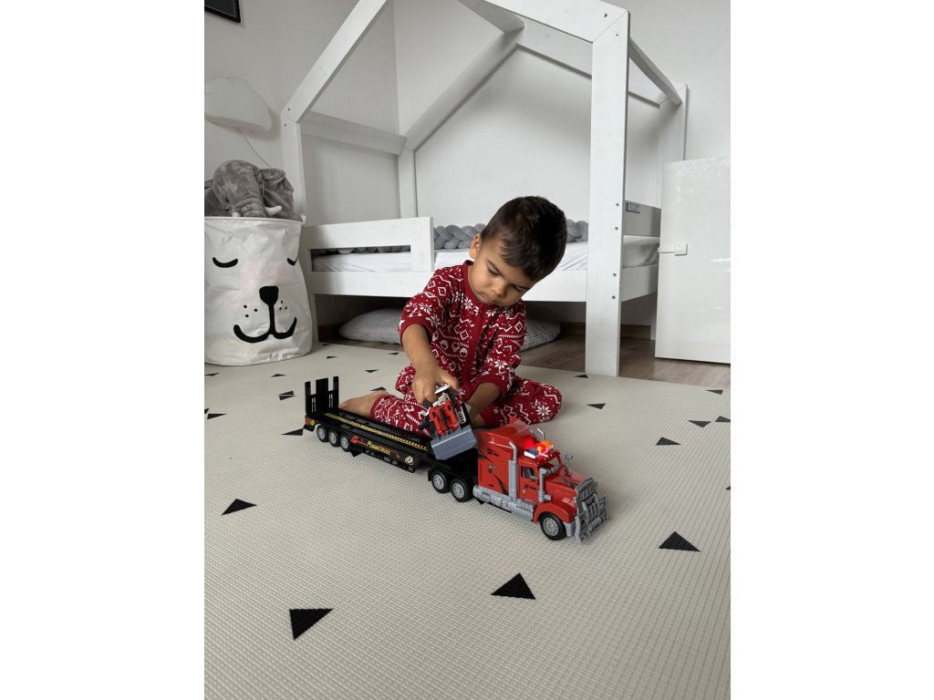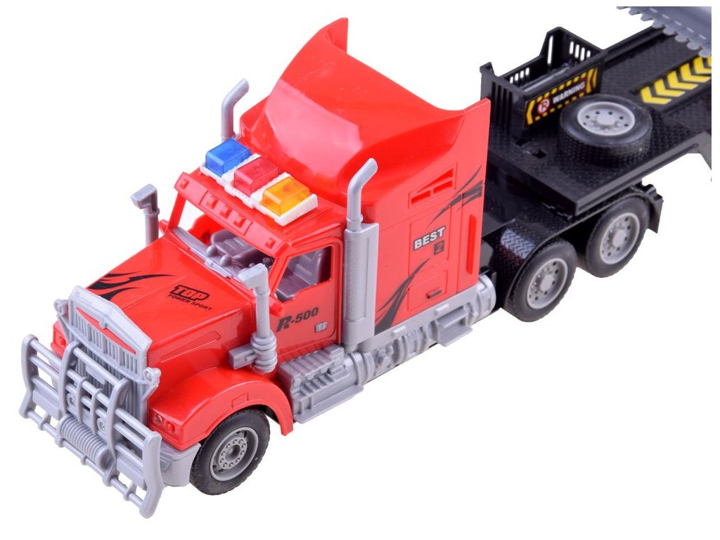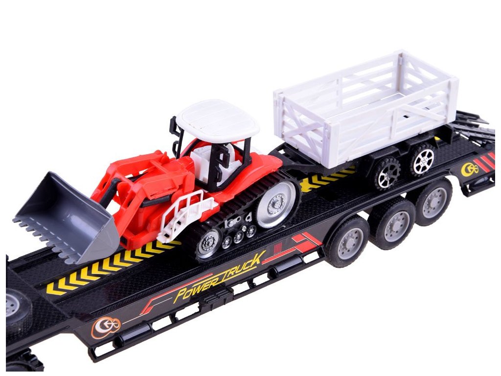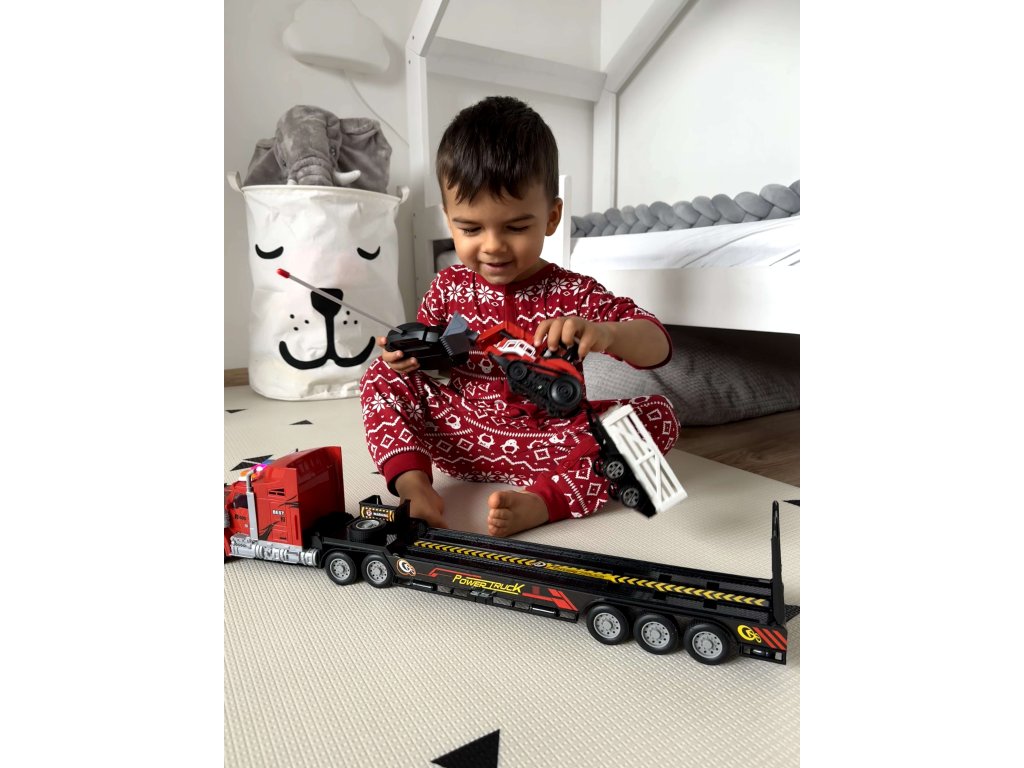 Kamion s přívěsem na dálkové ovládání s traktorem s vlečkou poskytne všem fanouškům vozidel dvojnásobnou zábavu. Kamion má světelné efekty a poskytne dítěti spoustu zábavy při hraní. Ke kamionu lze připevnit přívěs, na který lze bezpečně přepravovat traktor s přívěsem. Hračka je ovládána pomocí dálkového ovladače.