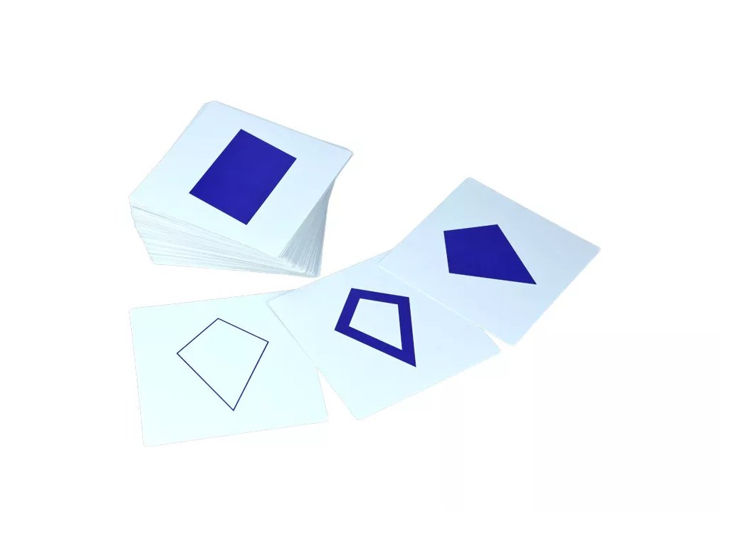 Kompletní soubor karet jako doplňující smyslová Montessori pomůcka určená pro práci s Geometrickou komodou. Karty odpovídají tvarům v komodě a slouží k procvičování vizuálního rozlišení a paměti tvarů.