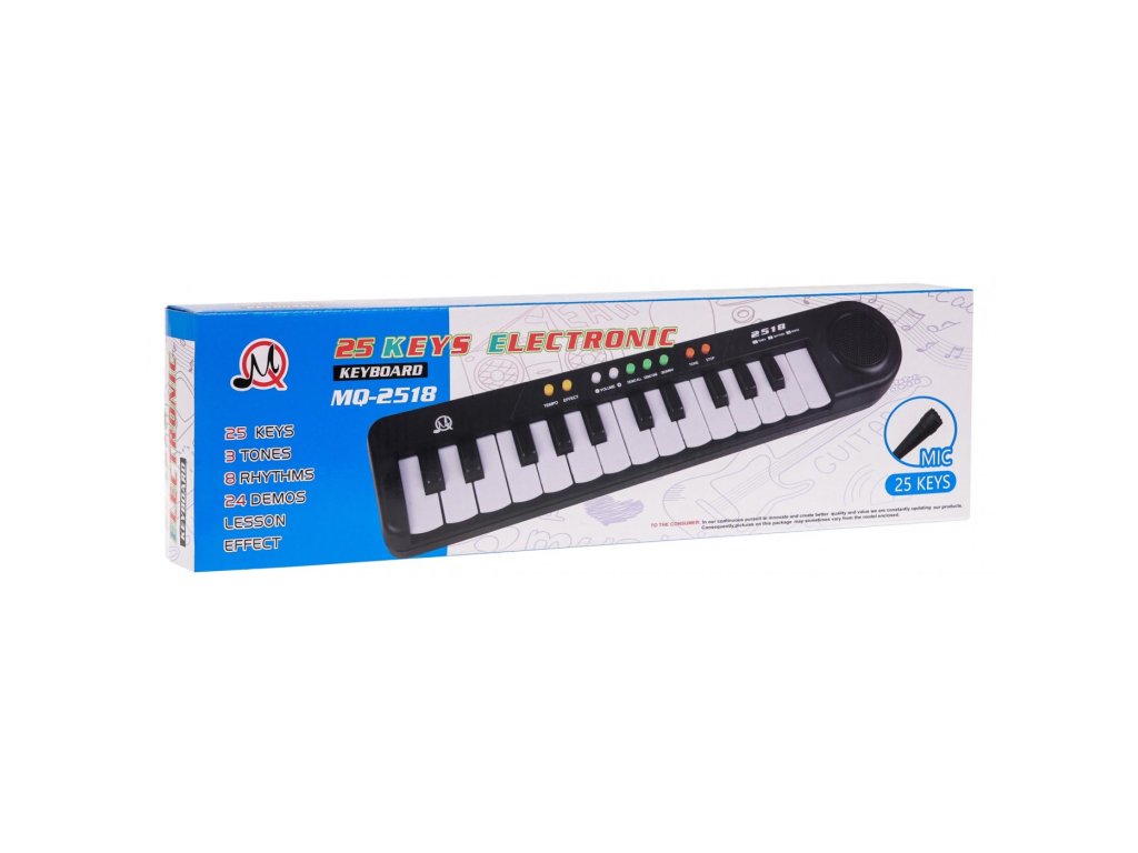 Keyboard je vybaven 15 bílými a 105 černými klávesami, které poskytují bohaté možnosti pro vytváření jedinečných melodií. Klaviatura má 3 tóny, 8 rytmů a až 24 demo podkladů, díky nimž je hraní ještě zábavnější. Vestavěná tlačítka umožňují nastavit hlasitost a tempo, což vám umožní přizpůsobit hudbu preferencím vašeho dítěte.