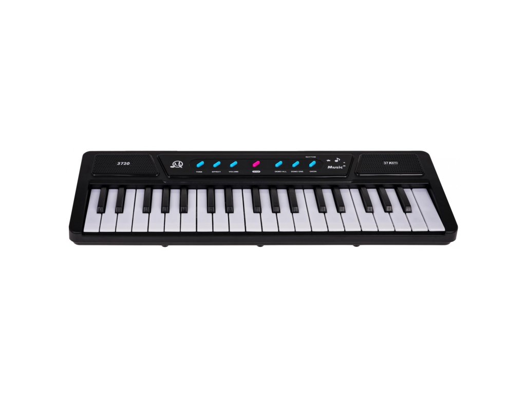 Keyboard je vybaven 22 bílými a 15 černými klávesami, které dítěti umožňují volně vytvářet melodie. Zařízení má zabudovaná tlačítka pro ovládání hlasitosti, demo tlačítko a funkci stop pro snadné ovládání a plnou kontrolu nad hraním. Lze napájet kabelem USB (je součástí dodávky) nebo 3 bateriemi AA, takže je pohodlná a přenosná. Součástí balení je mikrofon, takže malý umělec může zpívat a vytvářet vlastní hudební show.