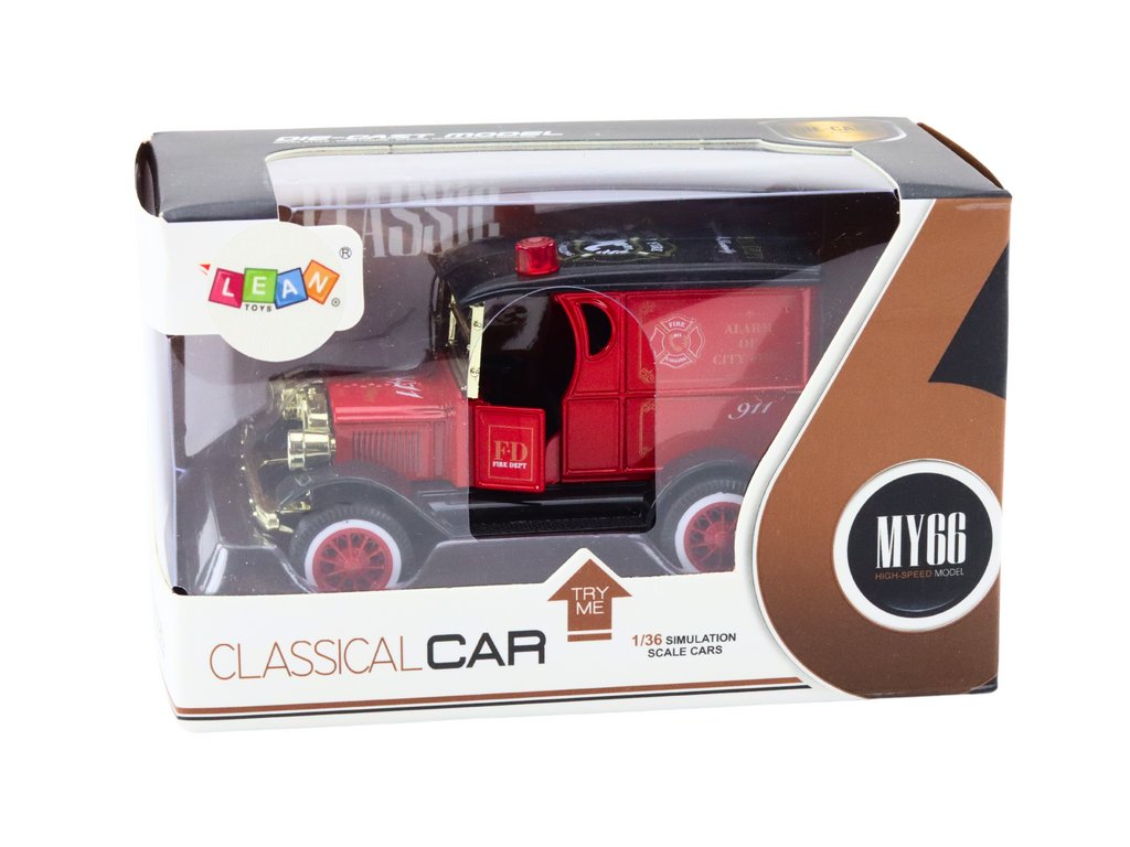 Hasičské auto v měřítku 1:36 je detailně zpracovaný model v typické červené barvě, který potěší sběratele i děti. Autíčko je vybaveno frikčním pohonem, světelnými a zvukovými efekty, které simulují realistické akční scény hasičského zásahu. Blikající světla a sirény přidávají na vzrušujícím herním zážitku. Auto má otevírací dveře a je vyrobeno z odolného kovu, což zajišťuje jeho dlouhou životnost a vhodnost pro aktivní hru.