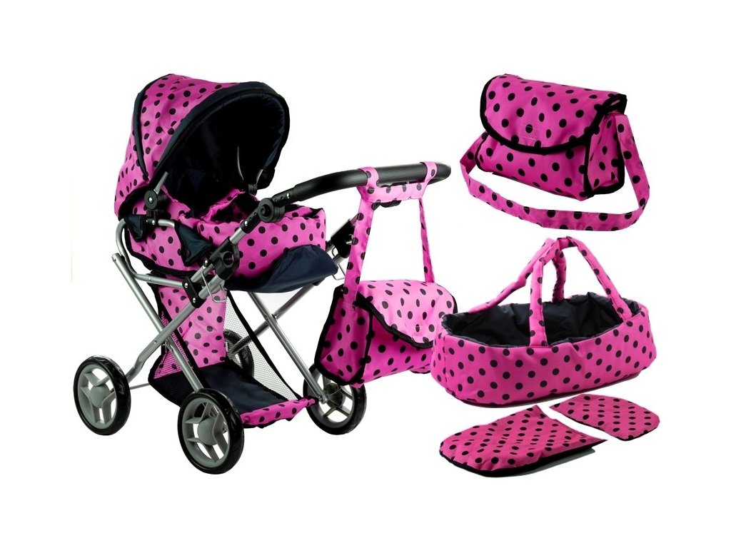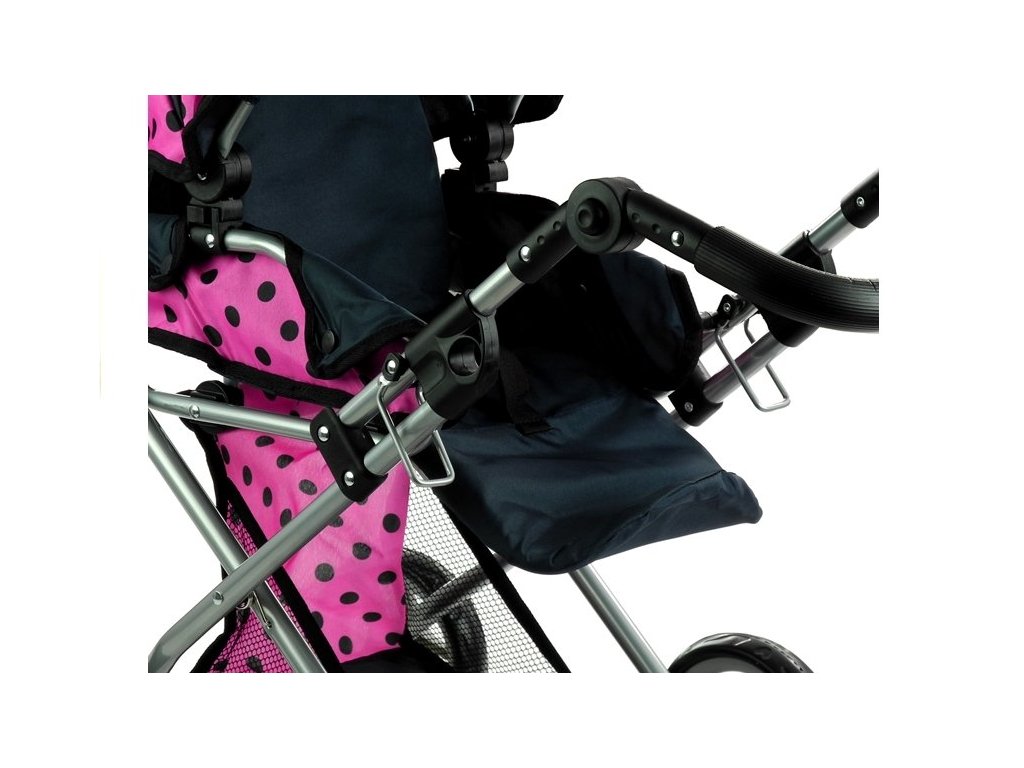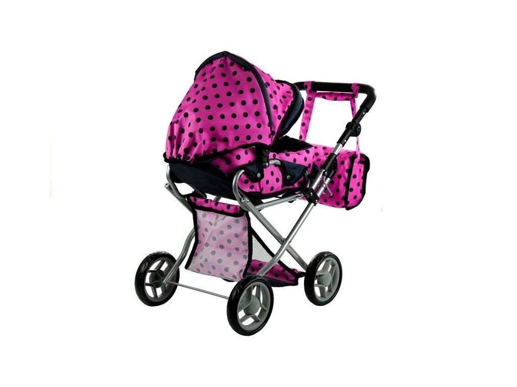 Představujeme Vám okouzlující kočárek v krásných barvách, který bude perfektním dárkem pro všechny dívky starší 3 let. Výhodou je pěnová rukojeť s nastavitelnou výškou a bezpečnostní zámek, který zabraňuje samočinné montáži při hraní. Chcete-li změnit výšku, stiskněte současně tlačítka na obou stranách rukojeti a vyberte polohu. Ke kočárku je připevněna velká taška a velký koš, který můžete využít na pomůcky a doplňky pro péči o hračku. V kočárku naleznete ložní prádlo, skládající se z přikrývek a polštářů. Kočárek byl vyroben z certifikovaných materiálů nejvyšší kvality, což je zárukou spolehlivosti a dlouhé životnosti hračky. Vozík je označen certifikátem CE.