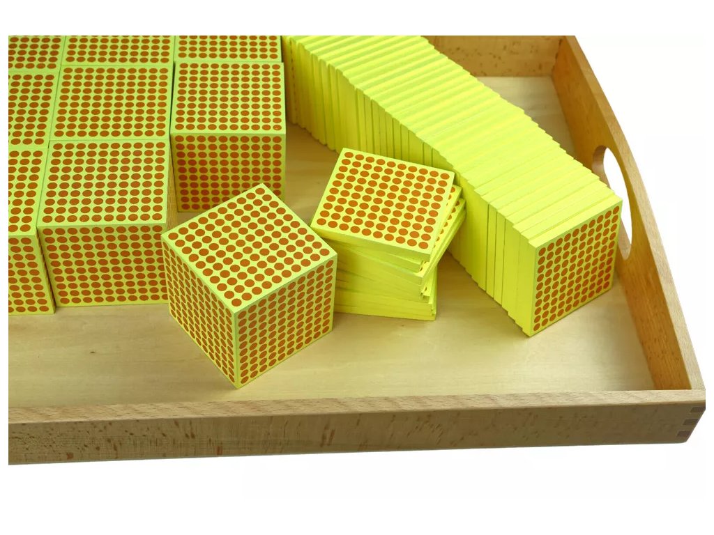 - 9 ks dřevěných krychlí znázorňujících 1000
