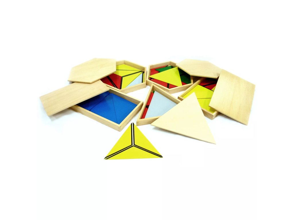 - Trojúhelníková krabice – obsahuje barevné trojúhelníky