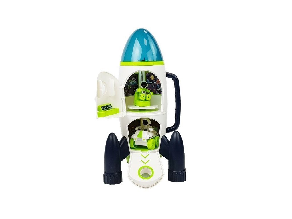 Impozantní raketa - vesmírná stanice je jako druhý domov astronoma a kontrolní stanice. Po otevření dveří se nám ukáže její vnitřek, kde se bez problémů vejde figurka astronoma a malé vesmírné auto. V horní části má astronom své řídící centrum, pohodlné křeslo, ve kterém může pozorovat jevy mimo Zemi. Pomocí posuvníku na zadní straně lze figurku astronoma uvnitř zvedat a spouštět. Špička rakety je otevíratelná a průhledná. Z dolní místnosti může malé vesmírné auto vyrážet na pozorování a zkoumání vesmíru. Na boku je rukojeť, stačí ji uchopit a dítě může létat do hvězdných výšin. Samozřejmě má i zvukové a světelné funkce. Po stisknutí tlačítka začíná odpočítávání ke startu a z dolní části rakety vychází červené světlo.