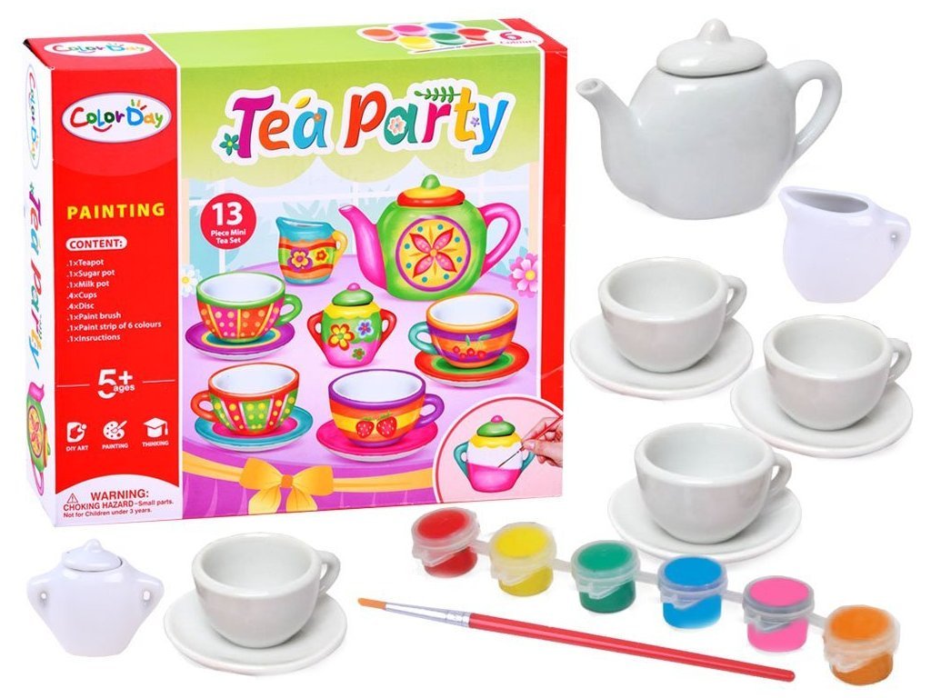 Set je určen k samoobsluze, proto myšlenka a výkon závisí pouze na uměleckých schopnostech dítěte. Tato sada bude dobře fungovat na mnoha čajových večírcích, potěší medvědy a panenky. Šálky a talířky jsou bílé.