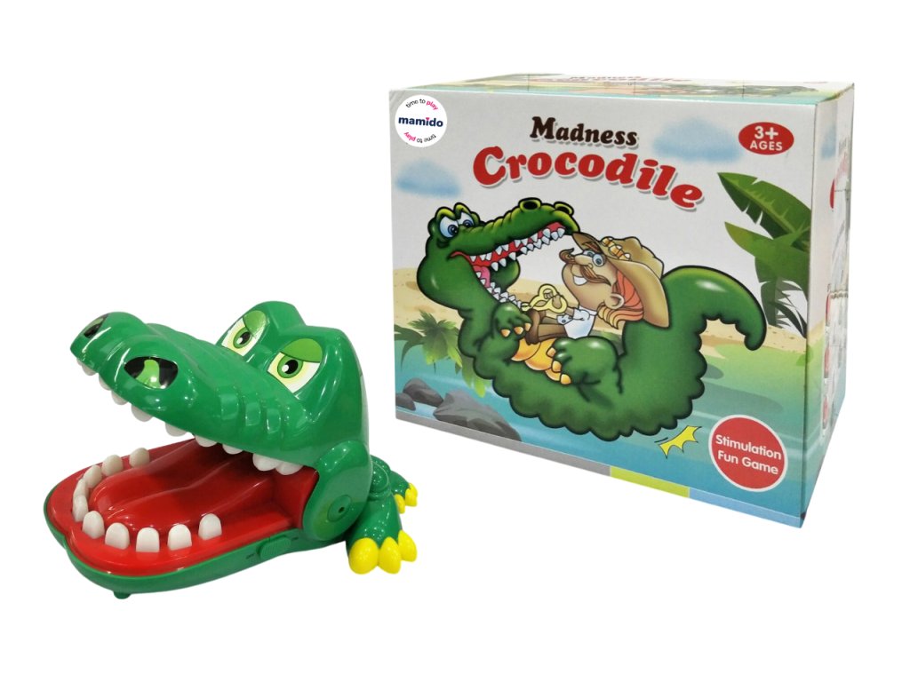 Zábavná stolní hra, která prověří postřeh i odvahu. Krokodýl otevře tlamu a hráči po jednom mačkají jednotlivé zuby – některý z nich je „bolavý“. Jakmile je stisknut ten správný / špatný, krokodýl bleskově zaklapne tlamu. Hra je ideální pro soutěžení s kamarády i rodinou a nabízí tři různé herní režimy, díky kterým se zábava nevyčerpá po prvním hraní.