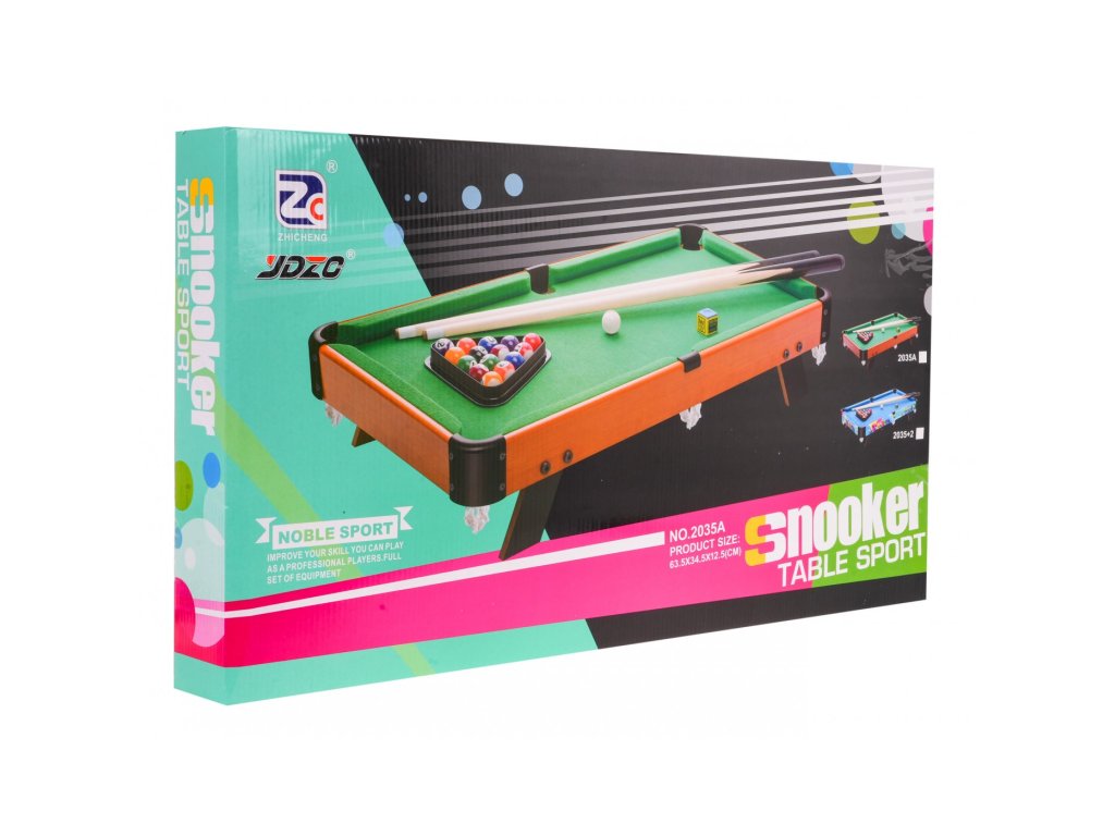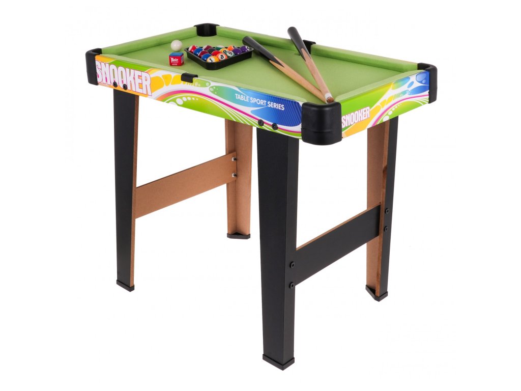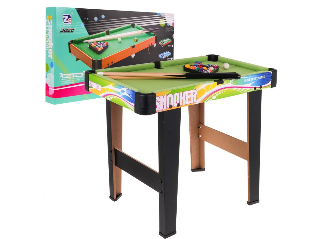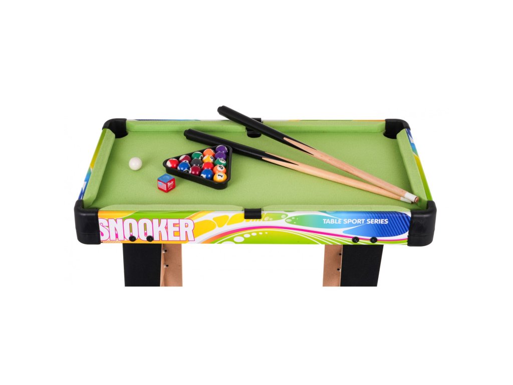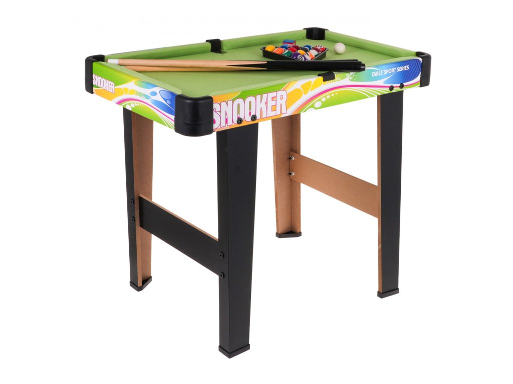 Kulečníkový stůl s příslušenstvím pro děti od 8 let. Stůl byl vyroben z pevných materiálů s důrazem na detail. Deska je odolná proti poškrábání a deformaci. Povrch stolu je potažen zelenou látkou.