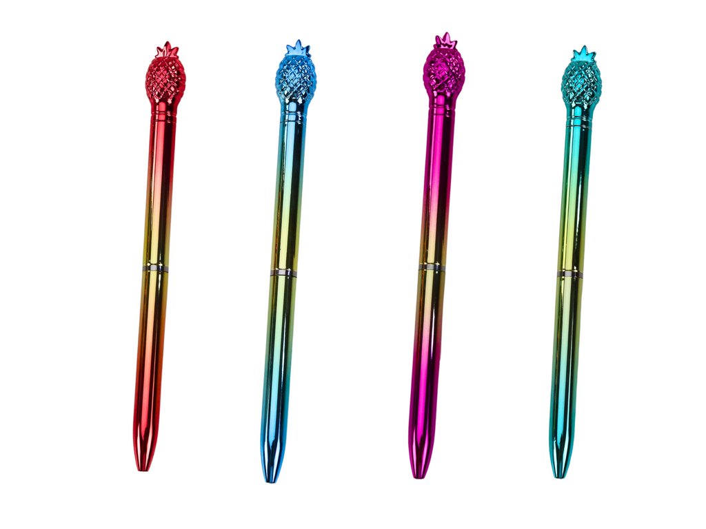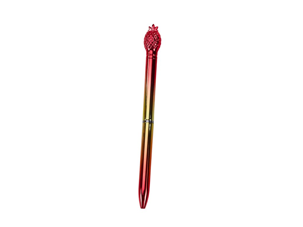 Tato jedinečná propiska spojuje styl a praktičnost, a díky ozdobě ve tvaru ananasu na svém konci působí elegantně a originálně. S modrým inkoustem, který zajišťuje hladké a plynulé psaní, se stává skvělým společníkem pro každodenní poznámky i výjimečné příležitosti. Ideální volba pro ty, kteří chtějí svým písemnostem dodat špetku elegance a osobitosti.