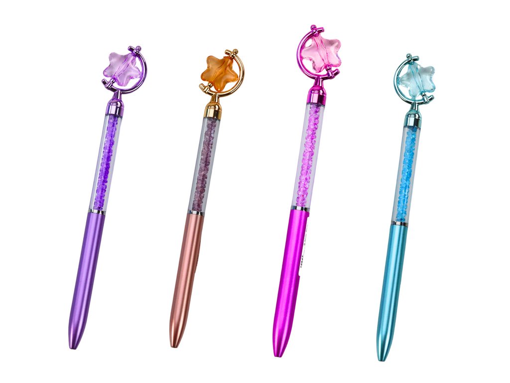 Tato elegantní propiska s hvězdičkou kombinuje styl a originalitu. Průhledné tělo s lesklými kamínky dodává luxusní vzhled, zatímco figurka vytváří jedinečný detail. Ideální jako praktický doplněk i designový dárek.