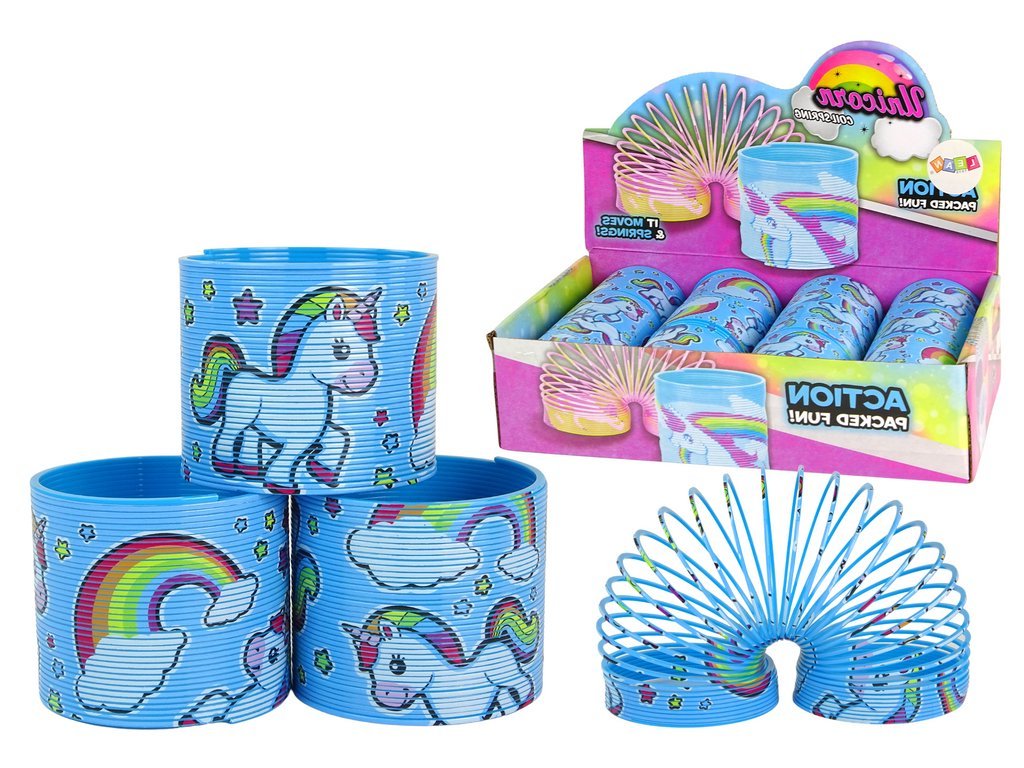 Představujeme kultovní modrou pružinku s roztomilým motivem jednorožce a duhy, v kompaktní velikosti 6 cm.