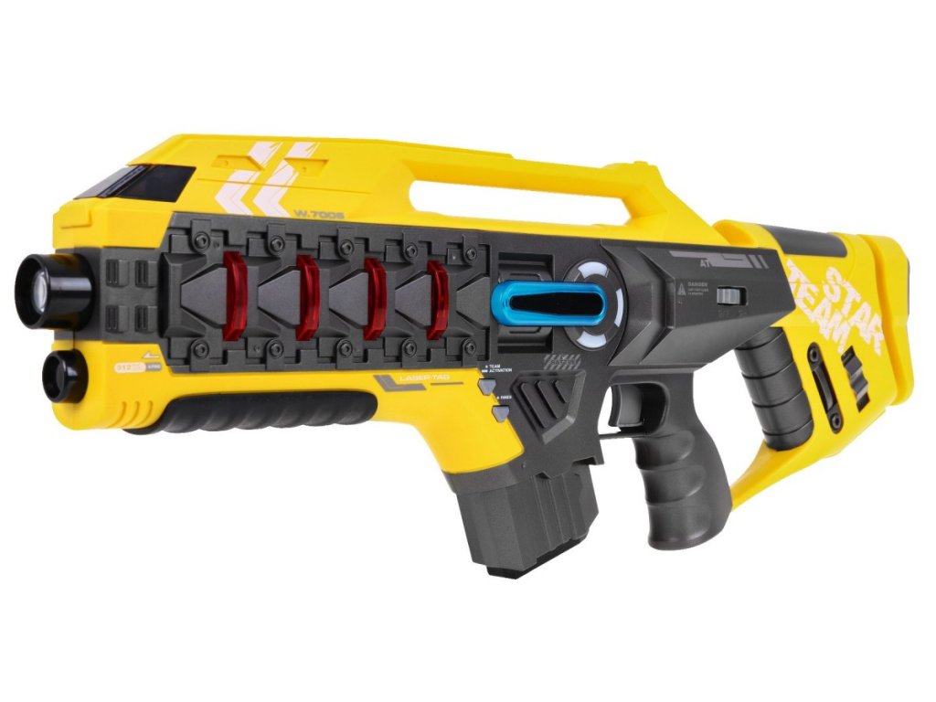 Exkluzivní sada obsahující dvě super laserové zbraně. Vynikající zpracování, živé barvy a pozornost detailu. Zbraně poskytují během používání velkou zábavu. Zbraň odesílá infračervené paprsky, které jsou přenášeny do přijímače v jiných zařízeních. Hračka je určena pro děti nad 8 let a je certifikována CE. Celý balíček je v barevném balení, který je ideální pro dárek