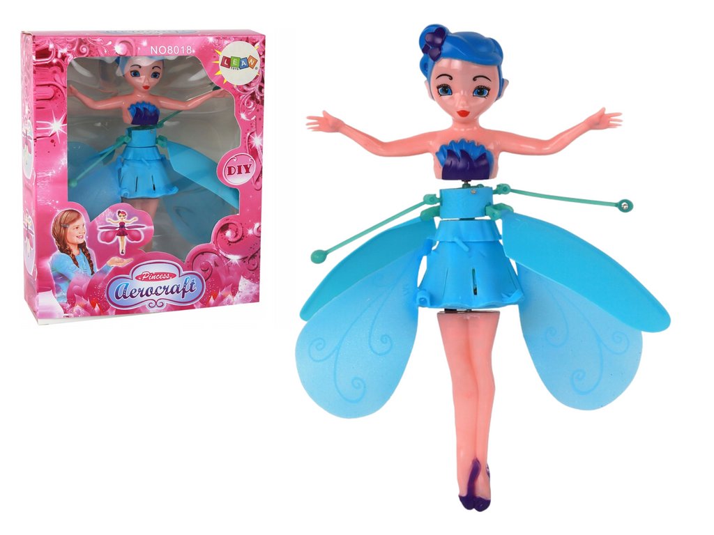 Magická létající panenka víla ovládaná rukou modrá