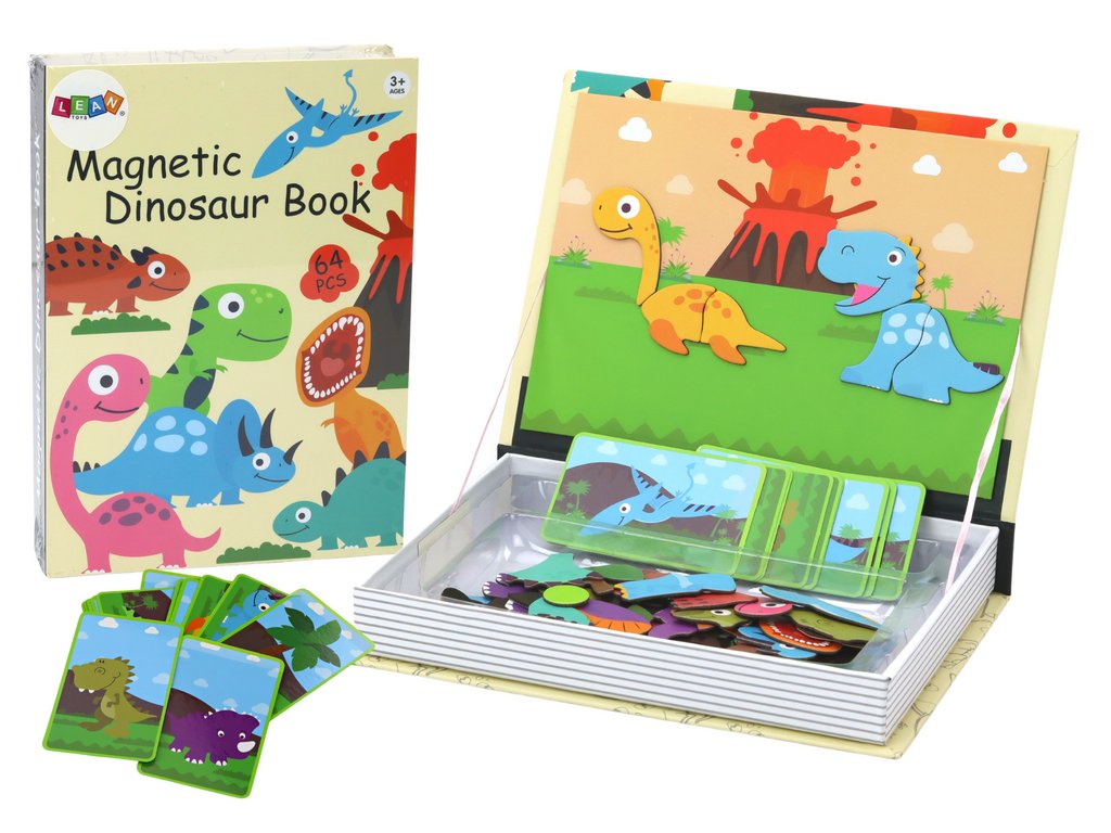 Magnetická kniha Puzzle Skládačka Dinosauři Karty Hlavolam 64 ks