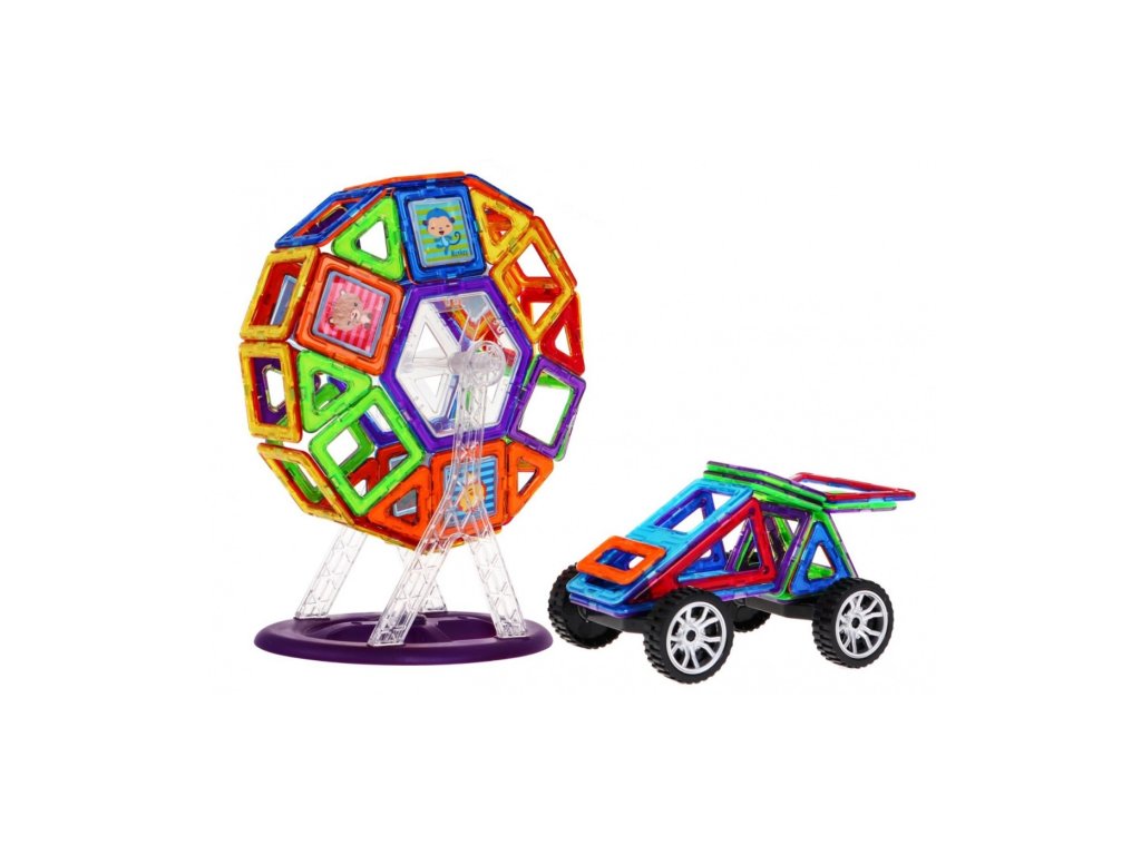 Magnetická stavebnice se skládá ze 112 dílů. Hra s kostkami stimuluje představivost a kreativitu dítěte, procvičuje manuální dovednosti a soustředění.